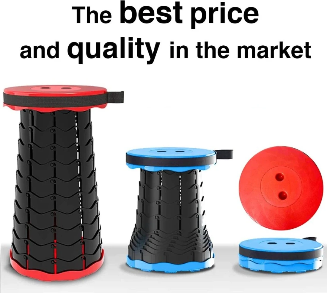 ADJUSTABLE TO RECLINE AND CHANGE HIGHTS : This telescoping stool is adjustable.You can adjust it to the most comfortable height. Suitable for kids and adults. When you need to sit and rest, all you have to do is twist, stretch to the desired height then sit and rest on the Telescoping stool. This Portable Folding Seat is very easy to open, extend and close. Make sure all buckles are locked firmly when stretching the compact stool.
