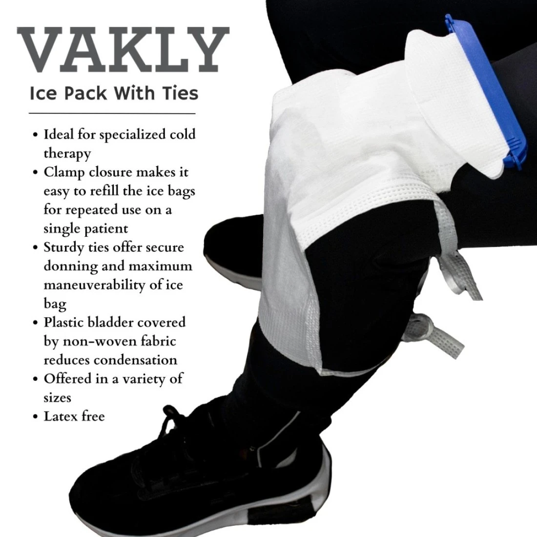 3 LAYER CONSTRUCTION - Each reusable ice bag is made with 3 layers, including an outer soft covering, that is soothing to injured tissue and prevents over colling. An absorbent middle layer, to wick away moisture from your skin, clothing and surroundings. A leak-resistant inner layer, to make sure the traumatized area stays dry from the leaking melted ice.EASY FILL OPENING – These cool therapy bags feature a wide neck opening that allows the ice bags to easily be filled with ice cubes or crushed ice from your own freezer, leaving less of a mess when filling. When the ice bag warms up and melts, simply empty and refill, as often as needed.EASY CLAMP CLOSURE - Refillable cold therapy first aid bags feature a hook and pin hinge, designed to snap back together securely shutting the cold pack tightly, preventing any leakage and spills. Being refillable, these cool packs are conveniently always ready to use.COOLING PAIN RELIEF - Cooling ice bags are meant to be placed on any area of your body after an injury to reduce swelling, bruising, muscle soreness and aches. Ice therapy is also used to relieve discomfort from toothaches, headaches, and migraines. Ideal for first aid, acute chronic pain, arthritis, sports injuries and more.4 SECURING TIE STRAPS - Each bag has four conveniently located straps, 2 on the top and 2 on the bottom of the bag, to tie and secure the ice bag around arms, legs, elbows and knees. Straps help keep the ice pack in place, reducing slipping and sliding, allowing for an easier recovery.