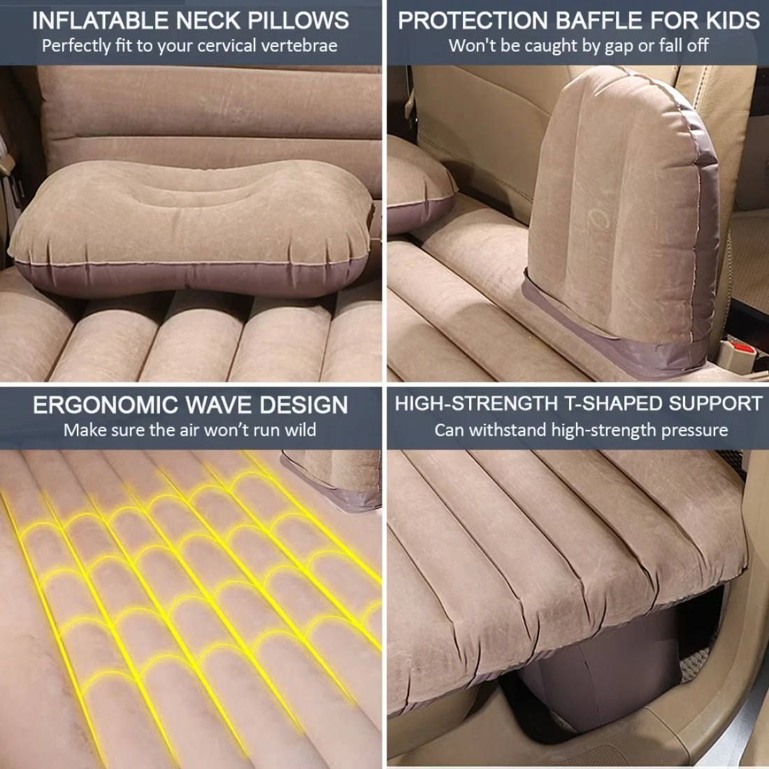 The inflatable mattress provides a comfortable environment during car travelling for sleeping, make you can enjoy a nap while you are tired, avoid accidents caused by fatigue driving.
