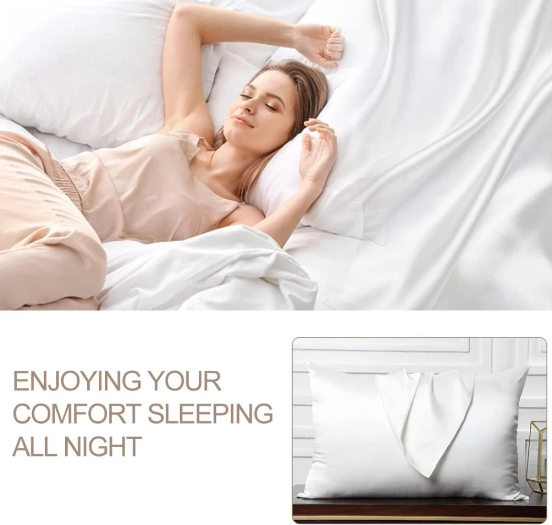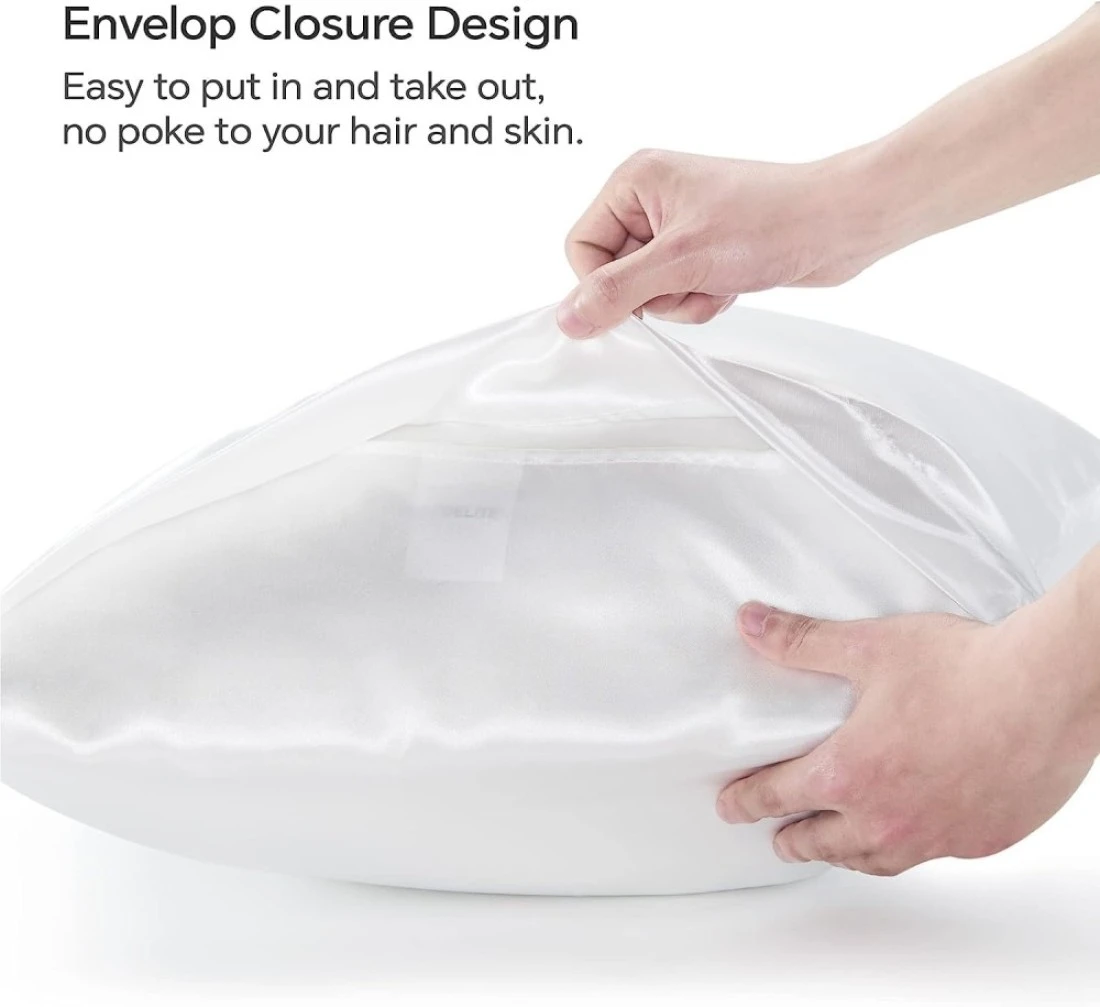MahMir® Silk Satin Pillowcase for Hair and Skin Queen - White Silk Pillowcase 2 Pack 76L x 51W CM (30x20 Inches) - Satin Pillow Cases Set of 2 with Envelope Closure (2pcs White)