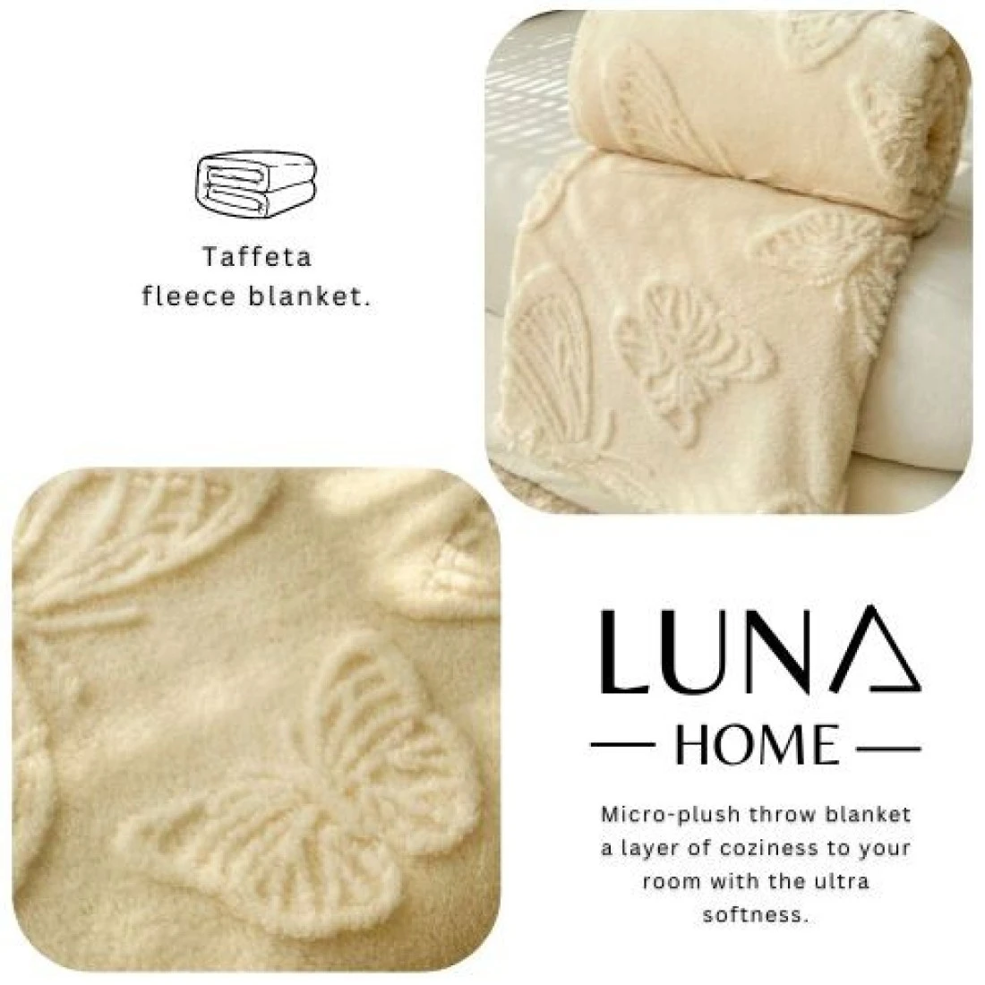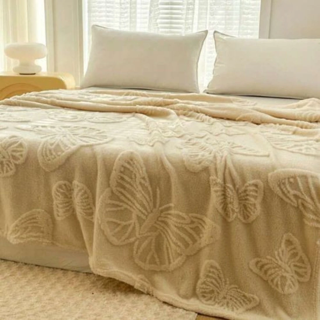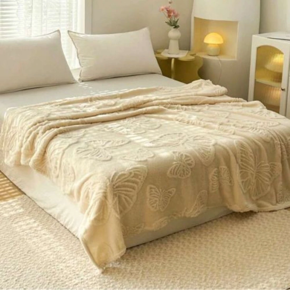 Luna Home 3D Imitation Butterfly Fleece Soft Blanket, Ivory color.