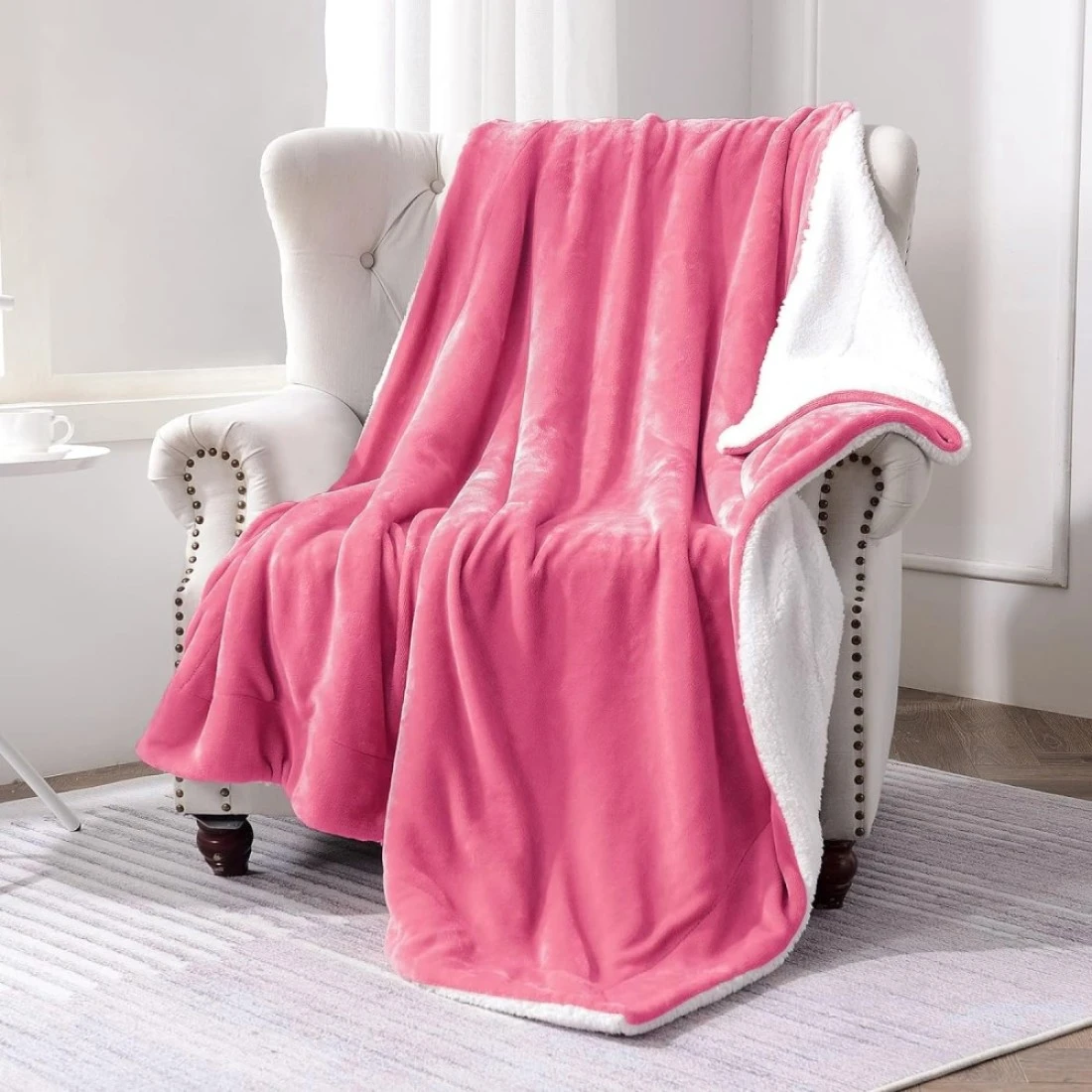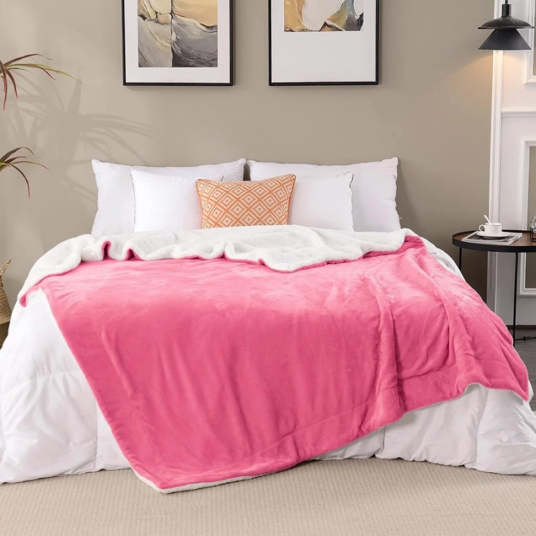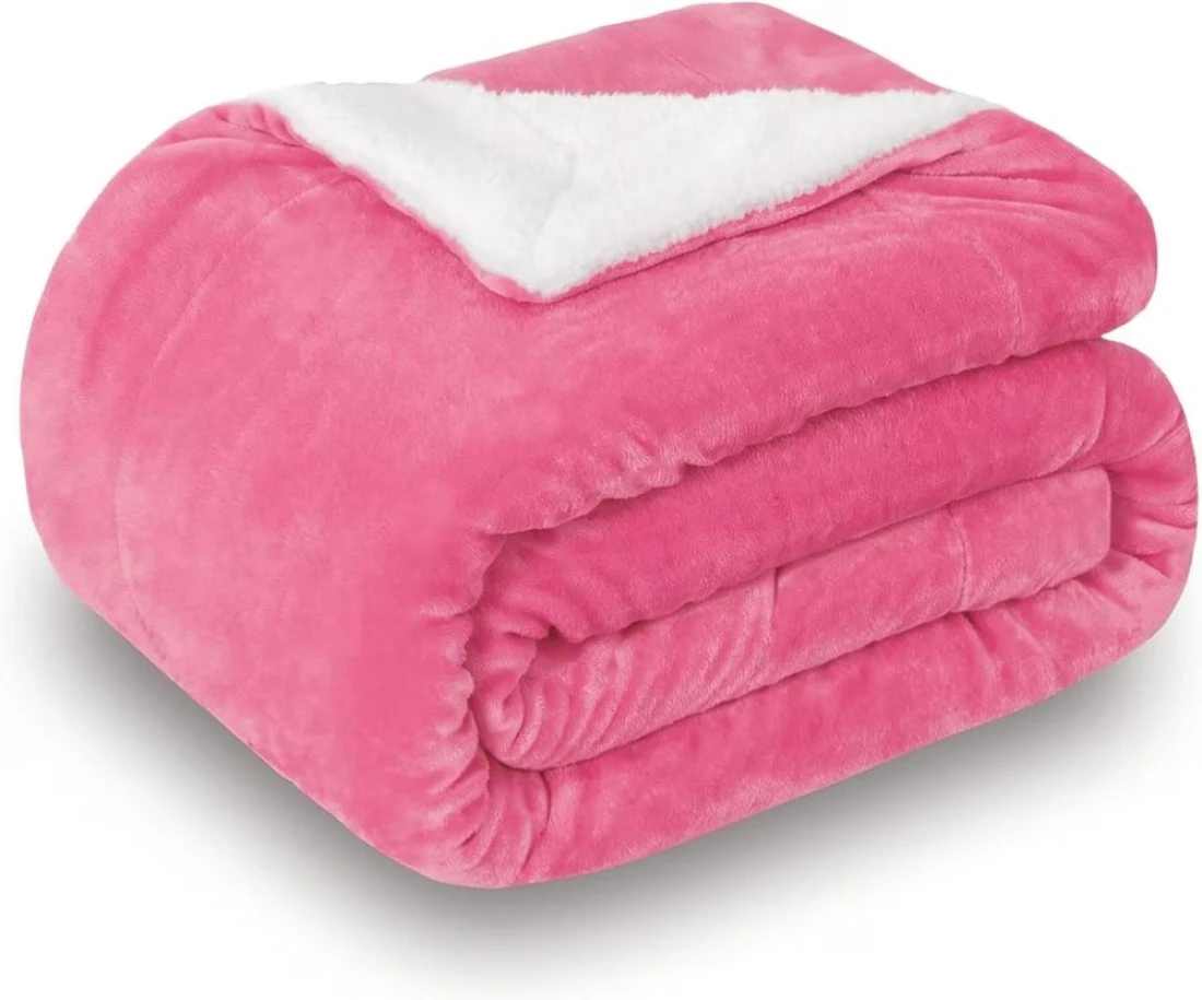 Fabienne Soft Sheep Reversible Sherpa Blanket King Size for Bed Throw Sofa Travel Flannel Blanket Pink 220x240cm