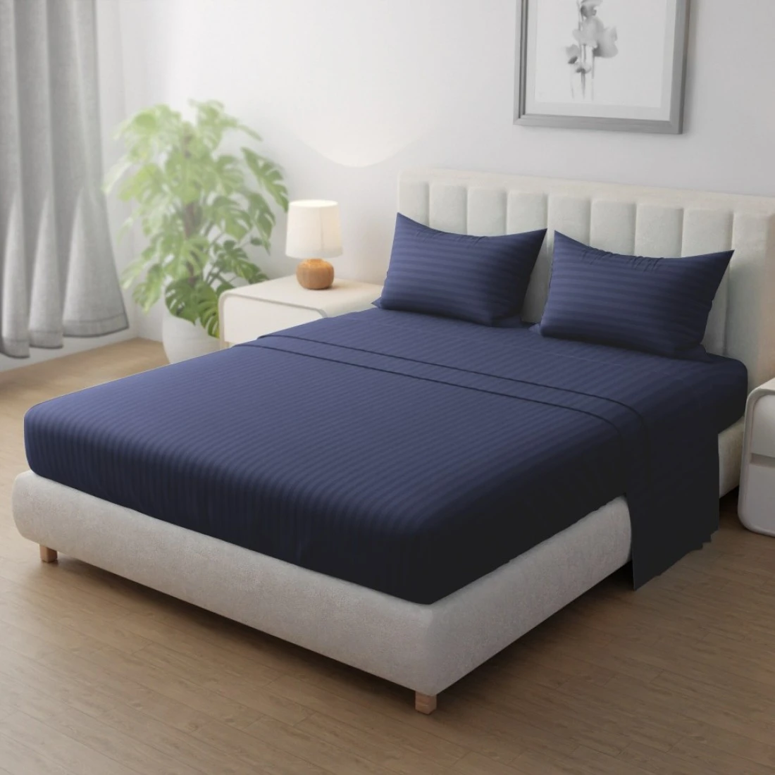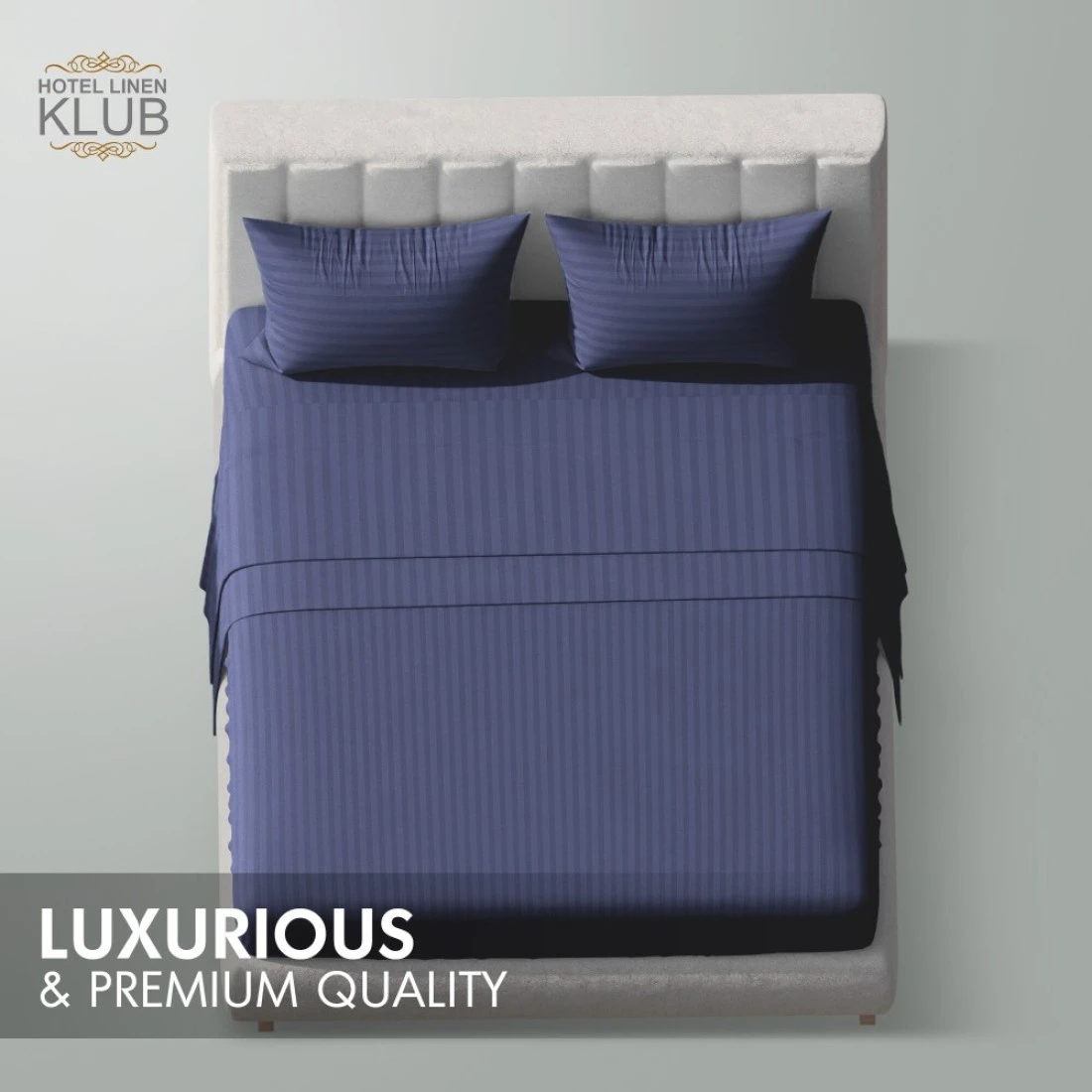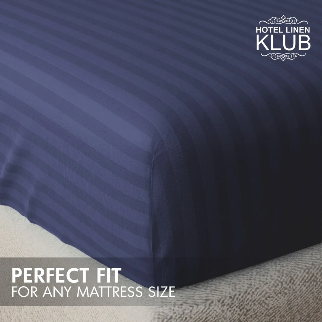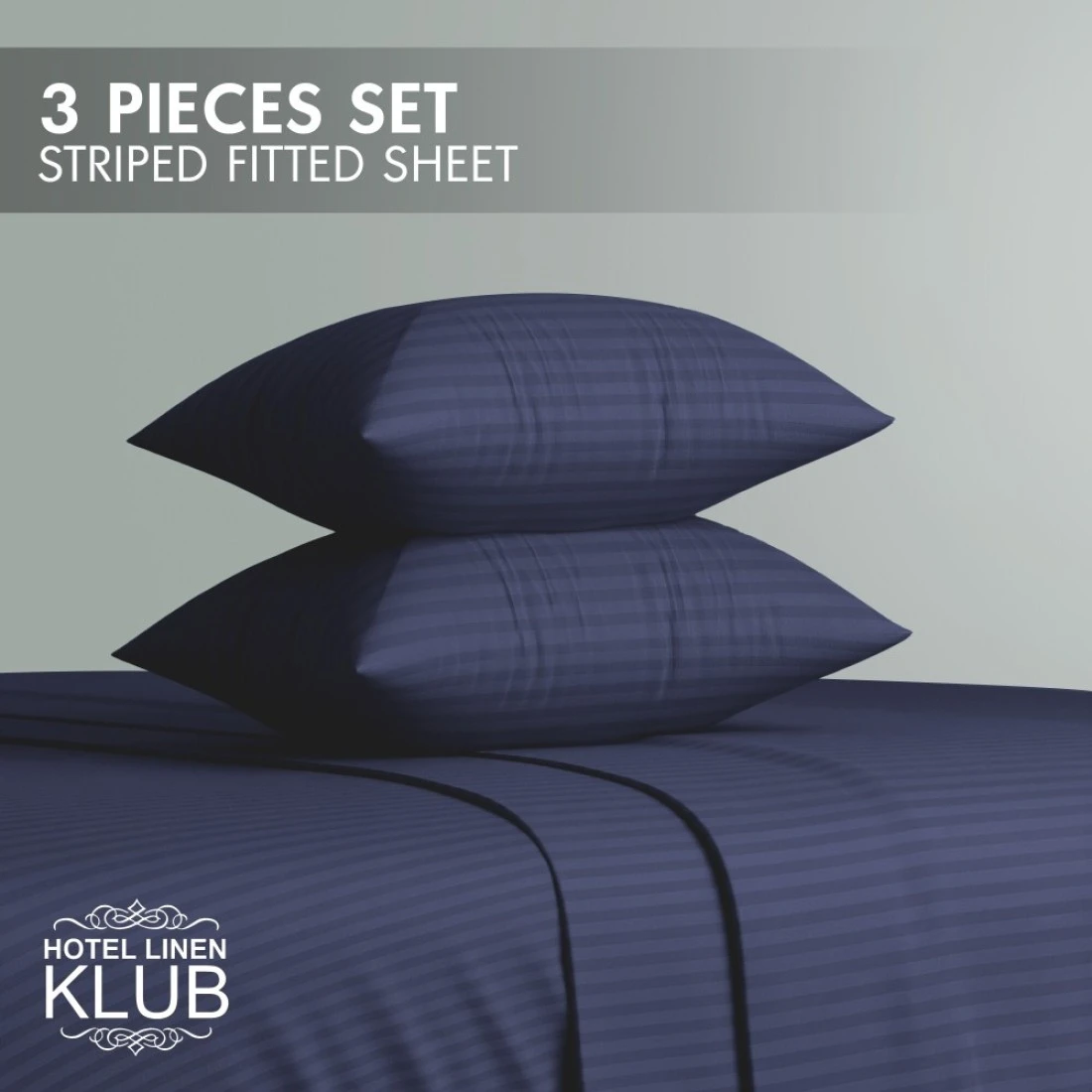Klub Linen 3PC Striped Fitted Sheet Set, Ultra Soft Microfiber Bedding Set - 1 Fitted Sheet Queen (150x200cm) with Deep Pocket and 2 Pillowcases (50 x 75 cm), Navy