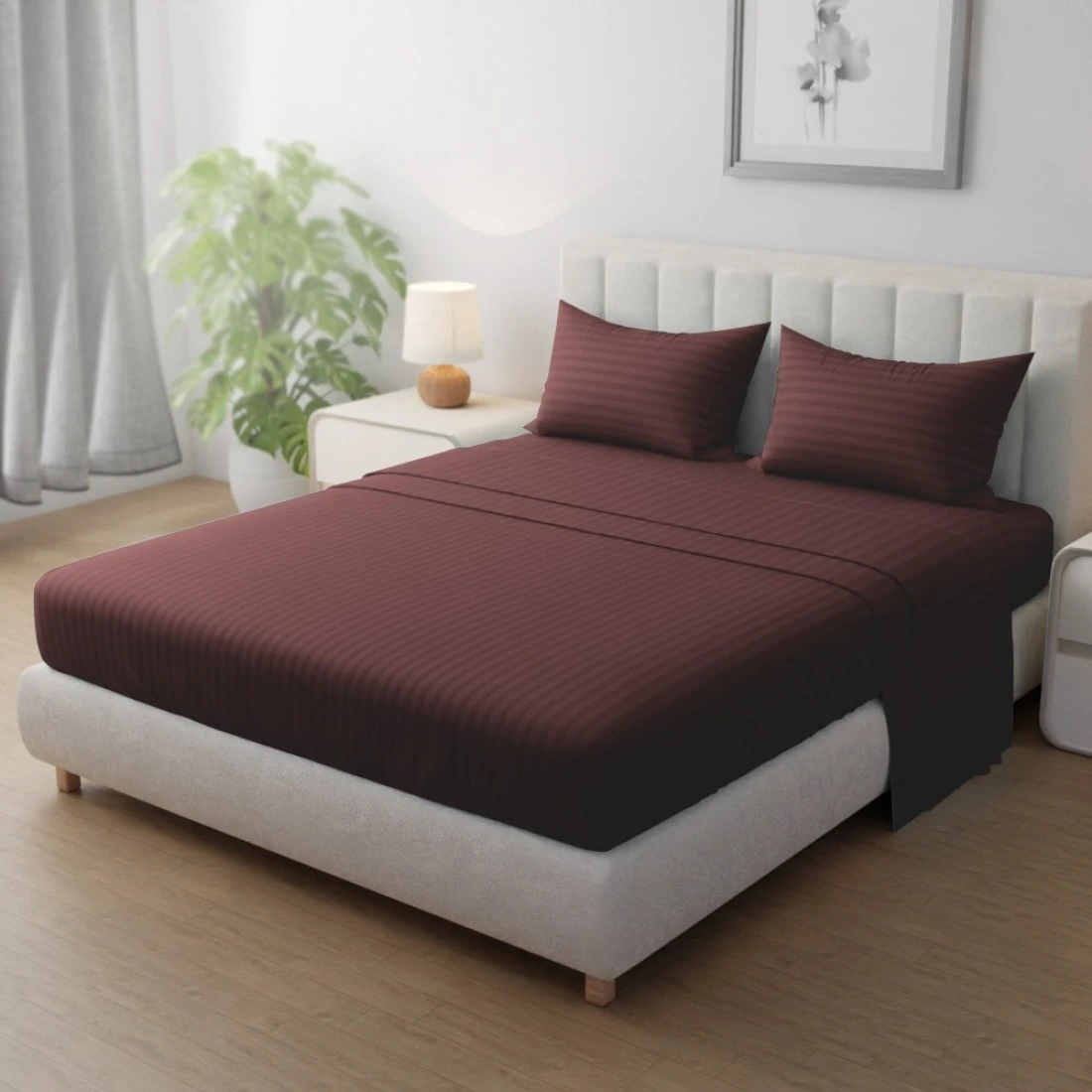 Klub Linen 3PC Striped Fitted Sheet Set, Ultra Soft Microfiber Bedding Set - 1 Fitted Sheet King (180x200cm) with Deep Pocket and 2 Pillowcases (50 x 75 cm), Chocolate