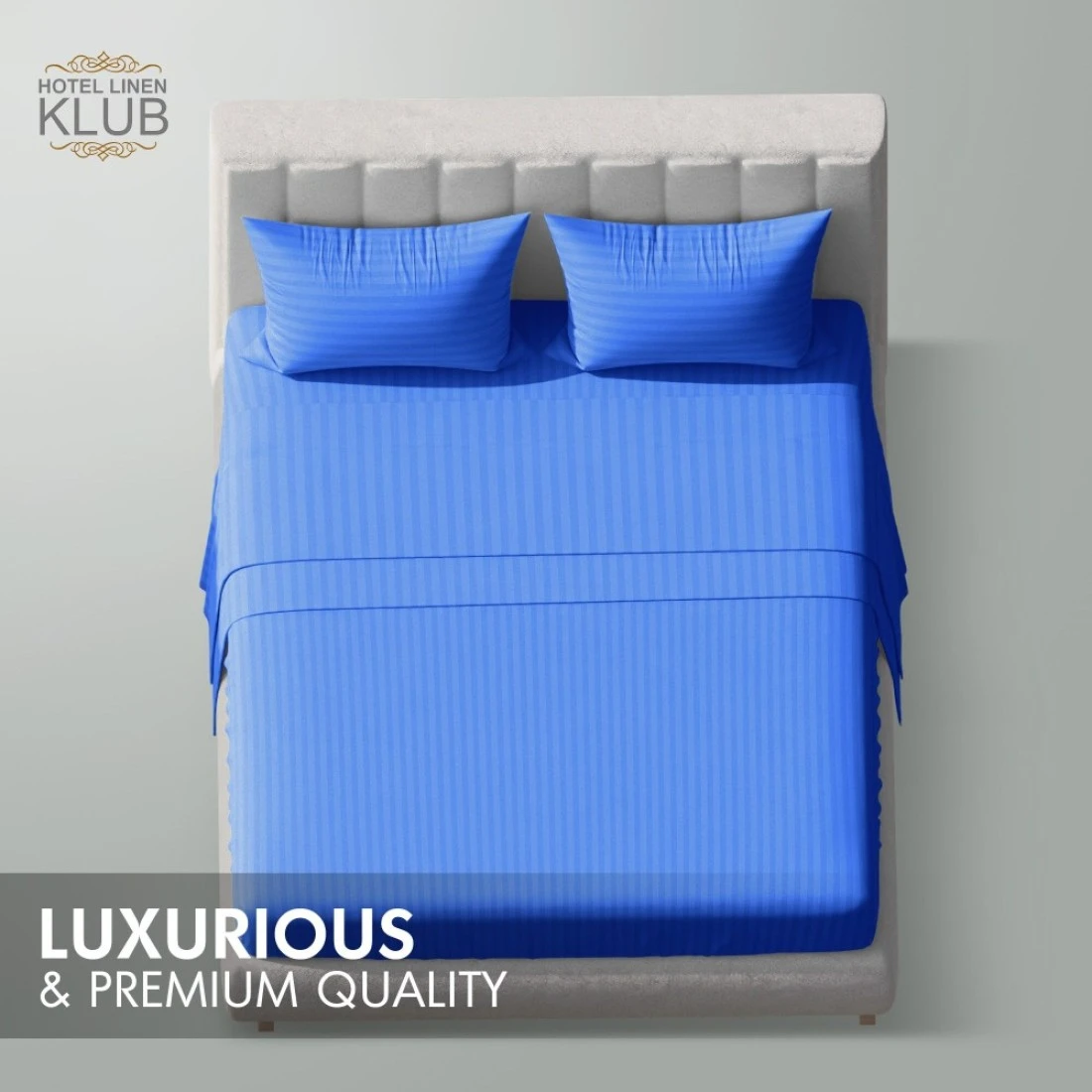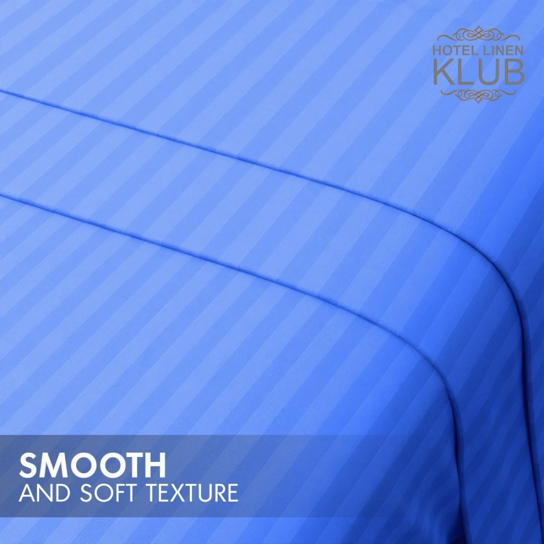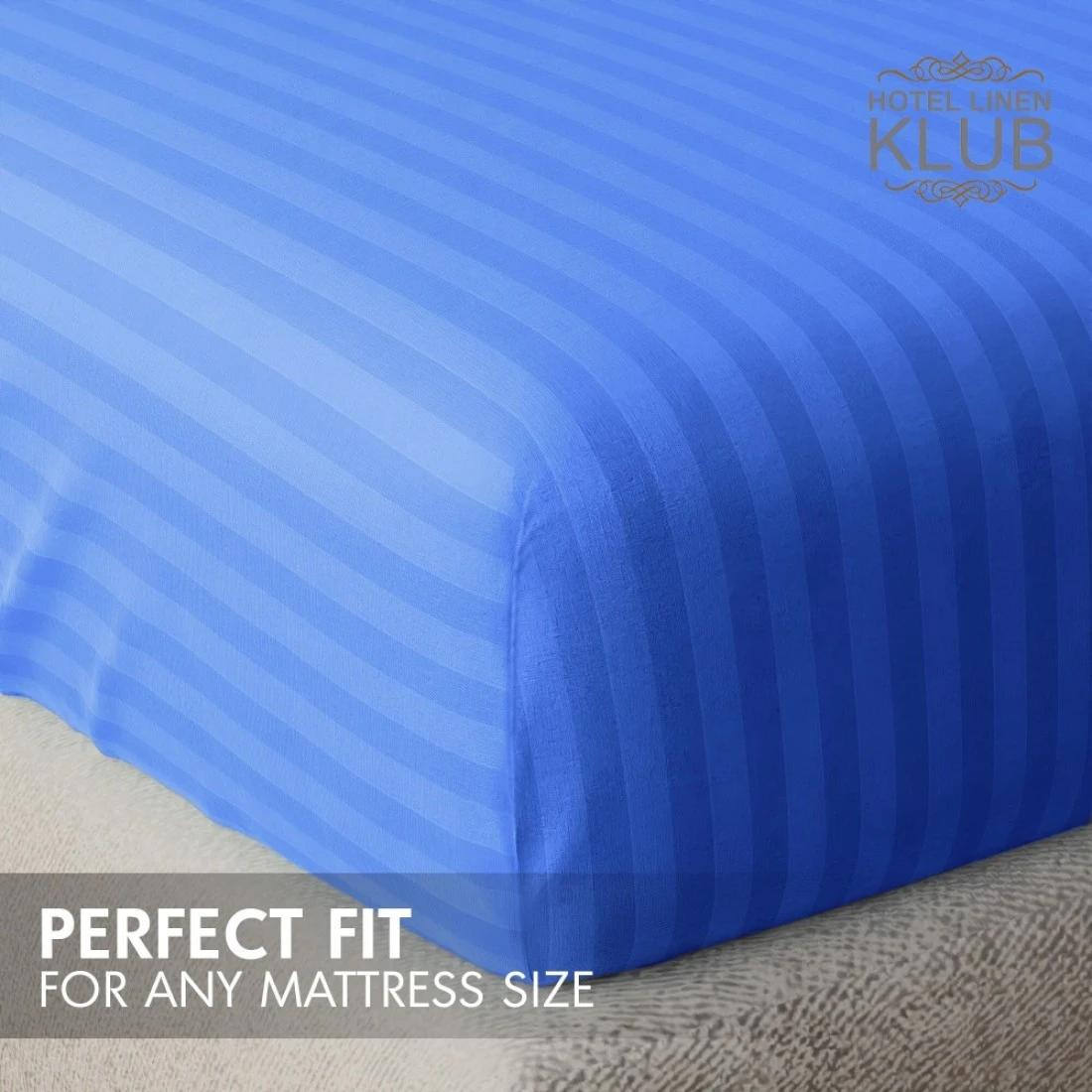 Klub Linen 3PC Striped Fitted Sheet Set, Ultra Soft Microfiber Bedding Set - 1 Fitted Sheet Single (90x190cm) with Deep Pocket and 2 Pillowcases (50 x 75 cm), Royal Blue
