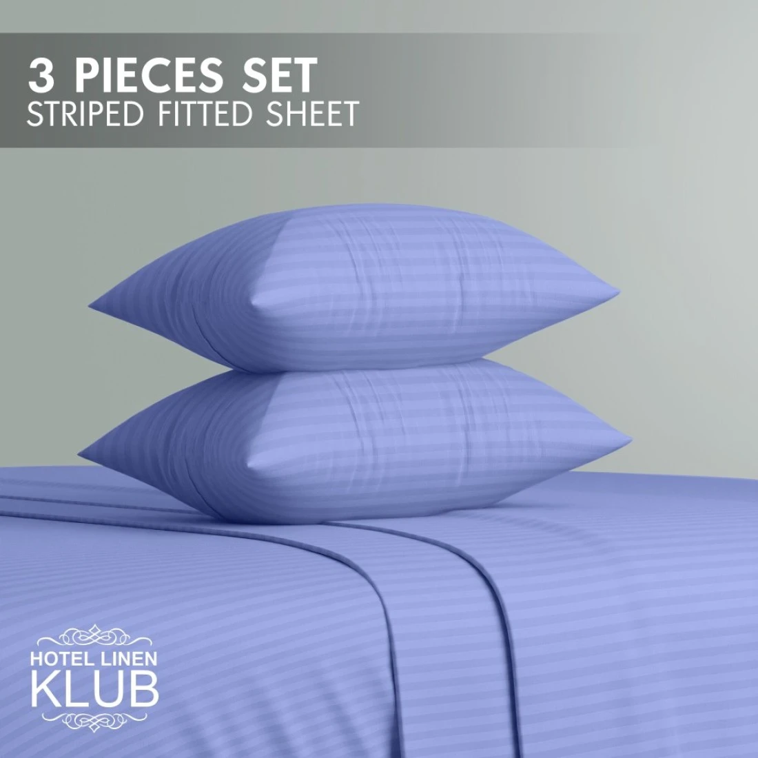 Klub Linen 3PC Striped Fitted Sheet Set, Ultra Soft Microfiber Bedding Set - 1 Fitted Sheet Single (90x190cm) with Deep Pocket and 2 Pillowcases (50 x 75 cm), lavender