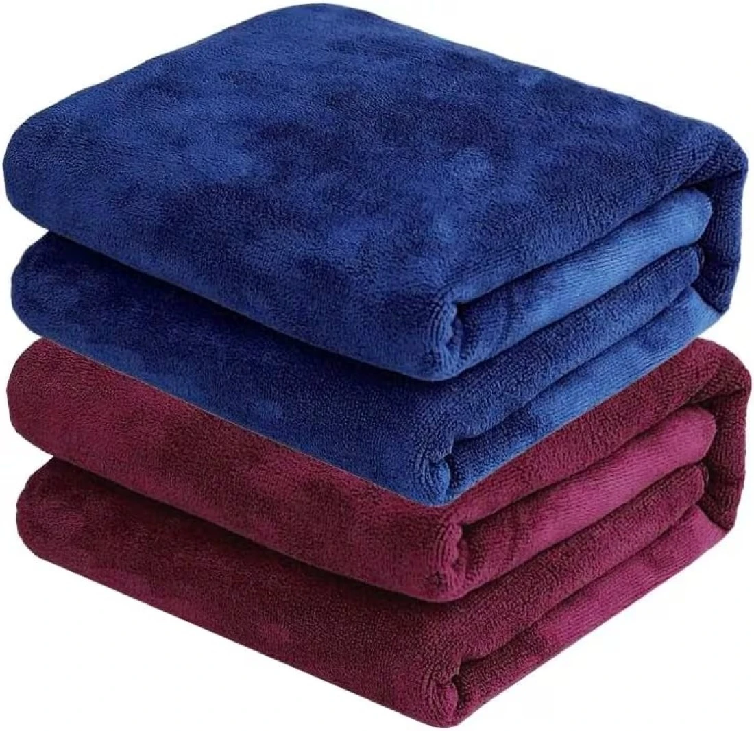 2-Pc Microfiber Bath Towel Navy/Wine Red 70x140cm, Soft, Durable, Super Absorbent Fast Drying and No Fading Multipurpose Towel