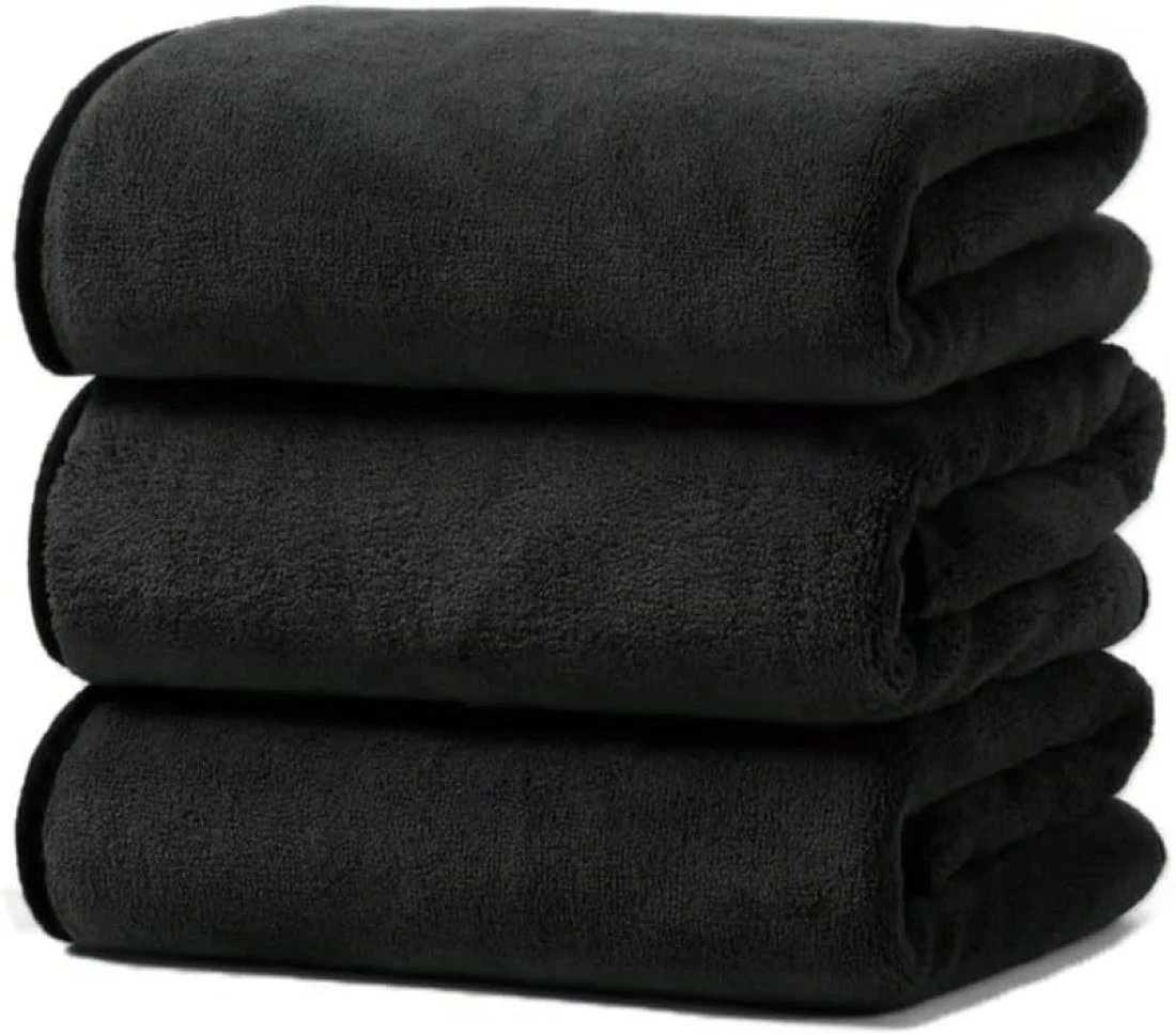Fabienne 3-Pc Multipurpose Microfiber Towel Set Black 50x90cm Gym Towel, Hand Towel, Hair Towel, Car Cleaning Towel, Kitchen Towel Soft and Durable