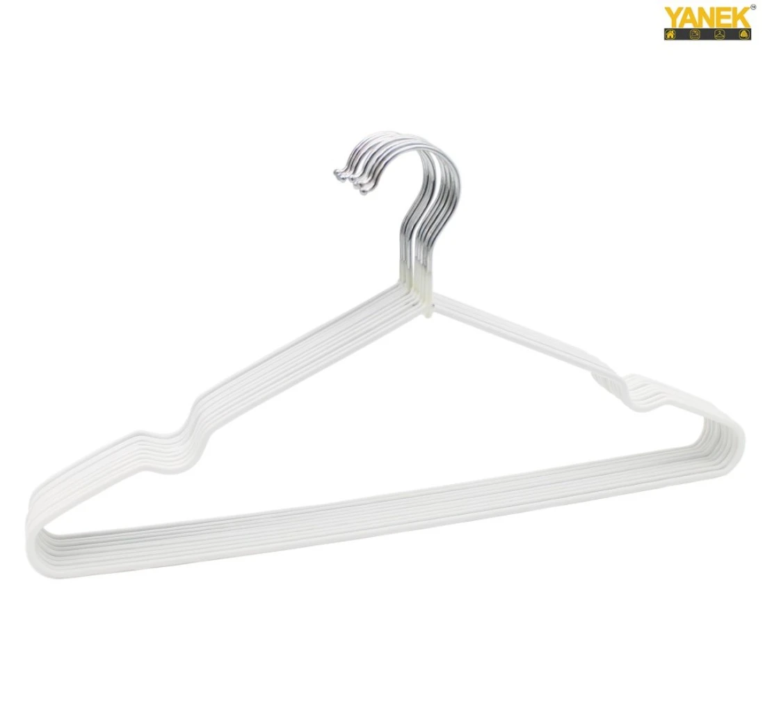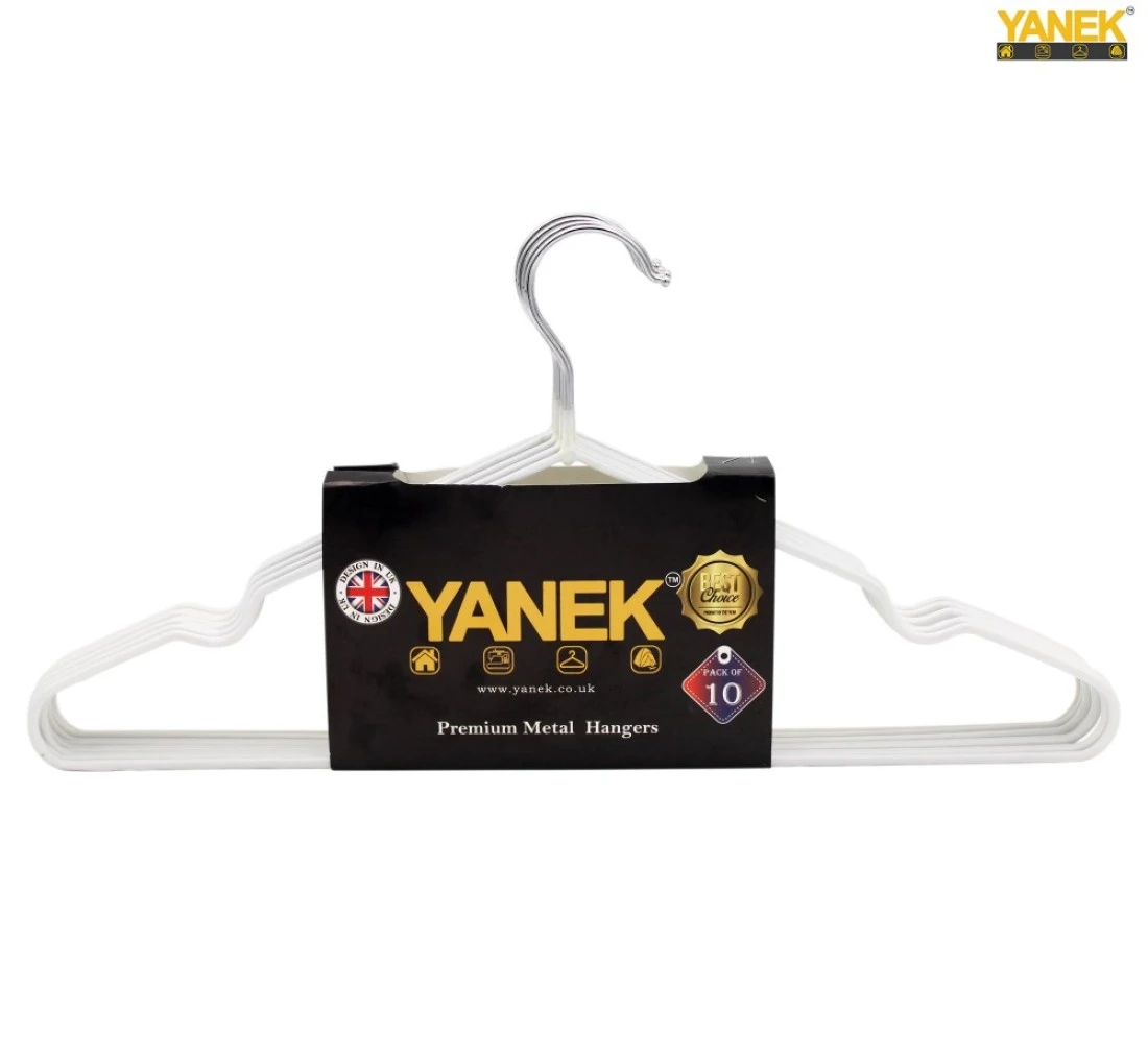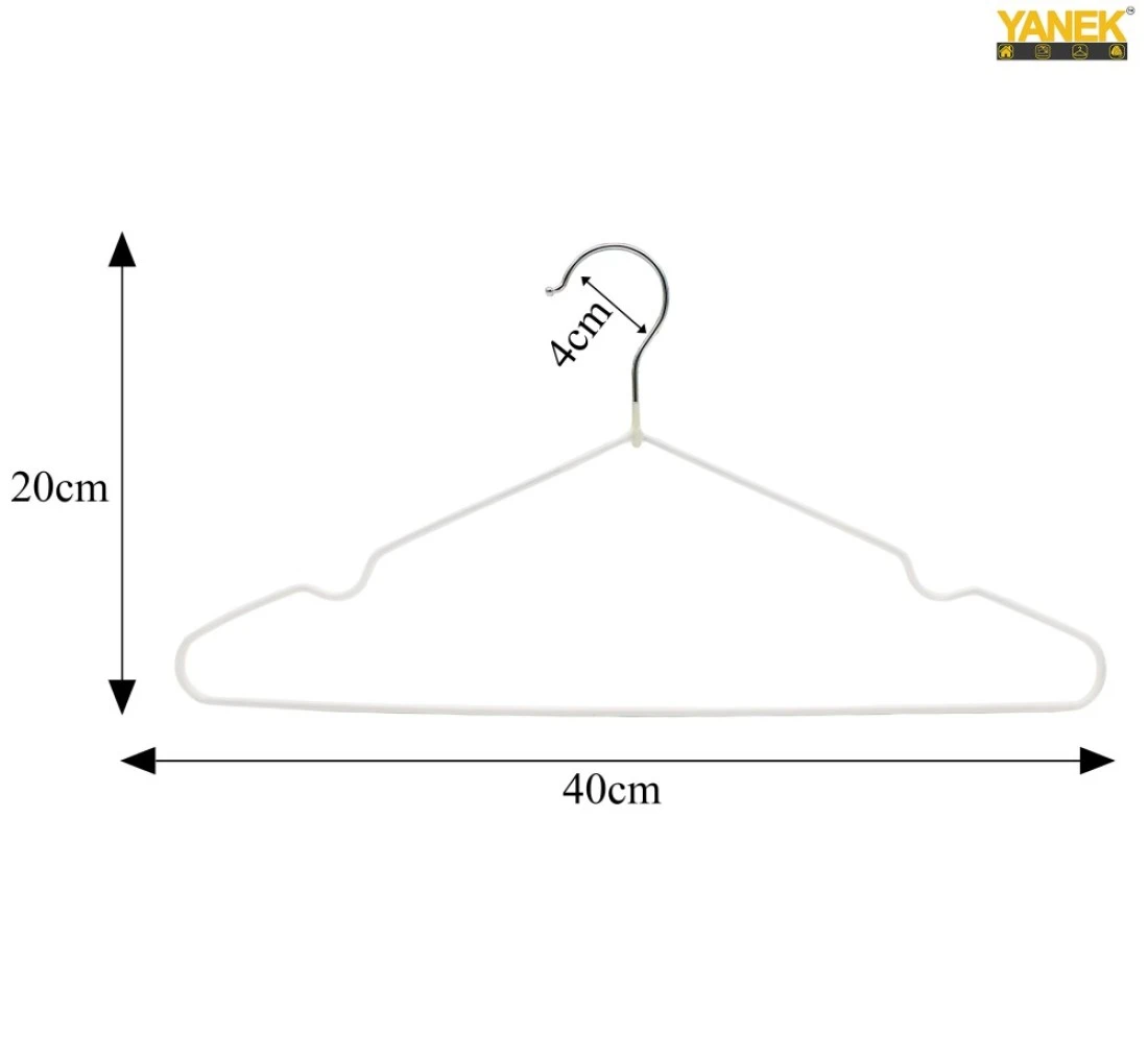 10PK YANEK Metal Hangers For Shirt, Coat, Trousers Strong, Anti Slip & Space Saving Rubber Coated, 40 CM (White)