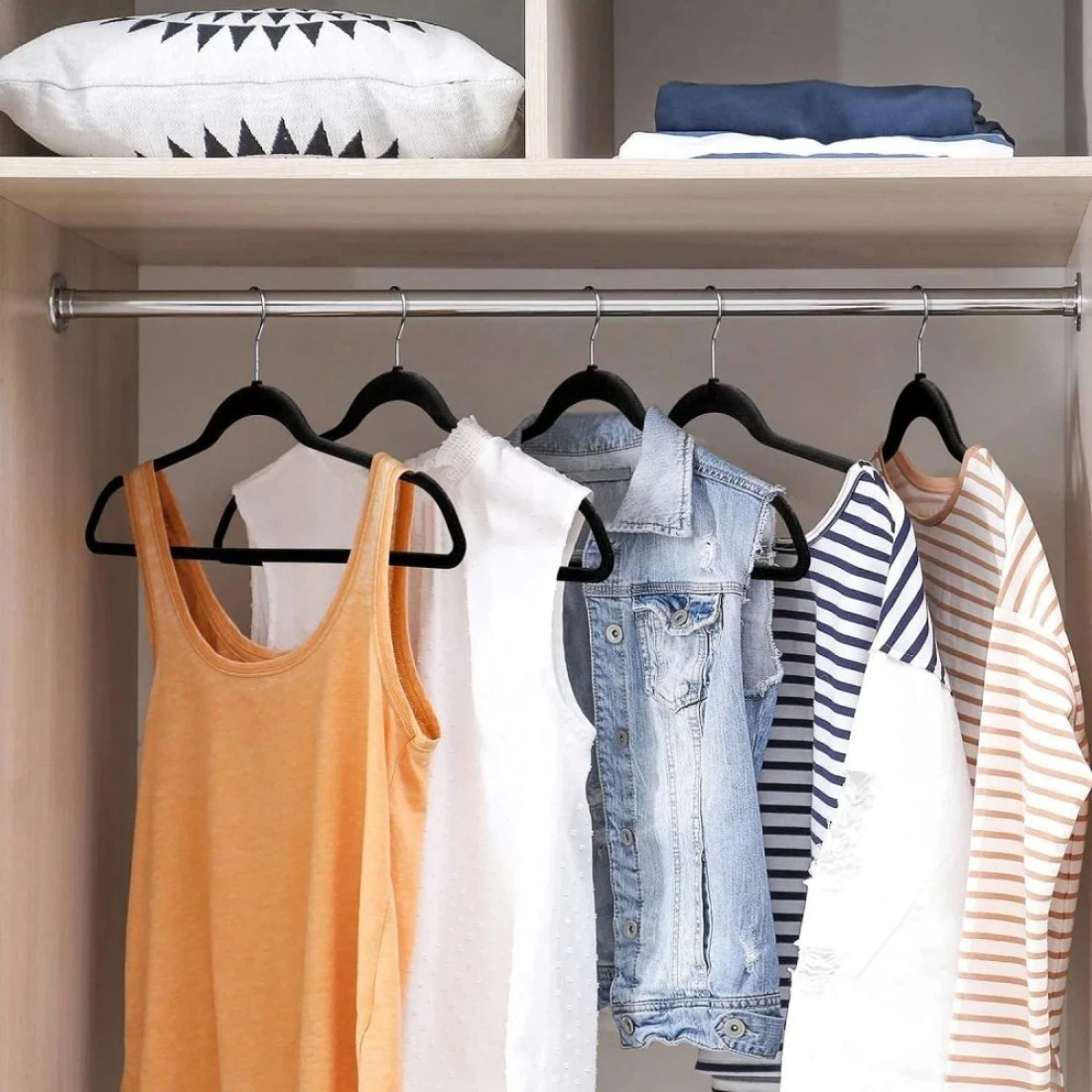 - High Quality Velvet: It will increases the friction between the hangers and clothes to protect your clothes from slipping.