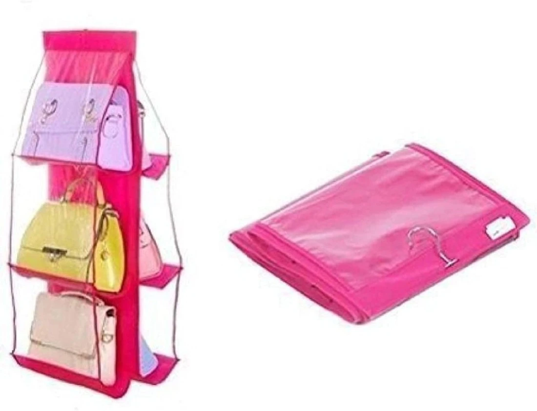 Blooming Time 6 Pockets Hanging Purse Handbag Organizer Clear Hanging Shelf Bag Collection Storage Holder Purse Bag Wardrobe Closet