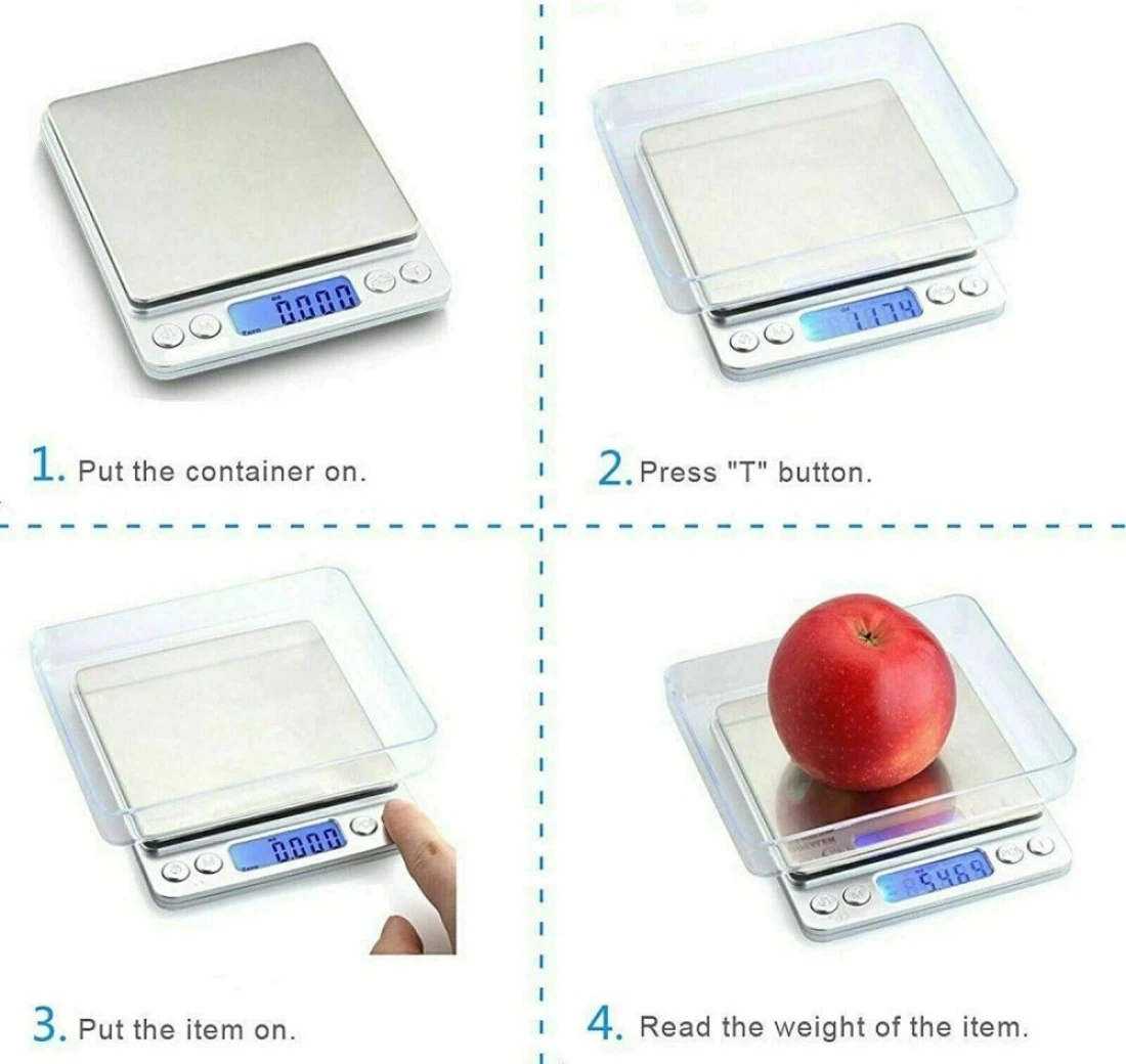 - INCLUDE: Digital Food Kitchen scale x1,tray x2 use Manual x1.mostly use in Homes, kitchens, offices and Jewelry