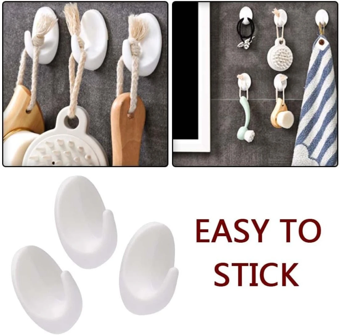 Marrkhor 6-Piece Self Adhesive Hooks White, Plastic Wall Hooks Self Adhesive White Hooks Wall Hanging Hooks Stick on Oval Hooks Seamless Hooks Towel Hooks Heavy Duty Sticky Hooks