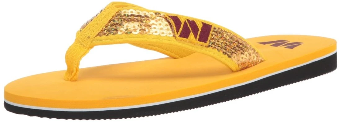 FOCO Women's NFL Logo Sequin Strap Sandals Flip Flops, Team Color, 9-1798
