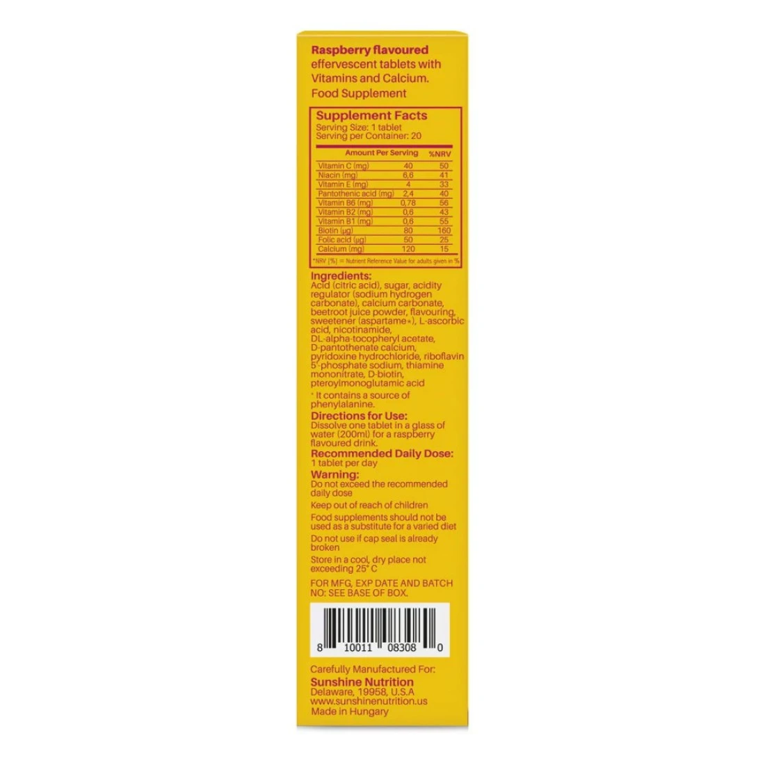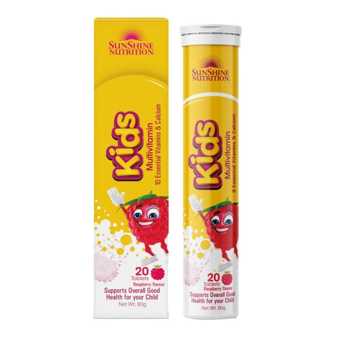 Sunshine Nutrition Kids Multivitamins Effervescent Supplement Raspberry 20 Tablets