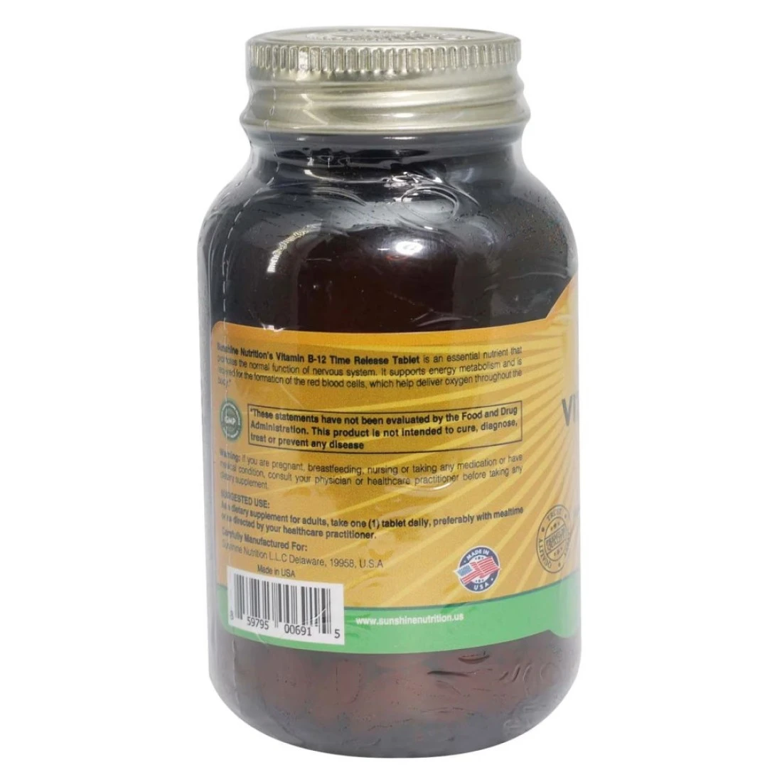 Sunshine Nutrition Vitamin B12 Time Release 1000mcg Dietary Supplement 100 Tablets