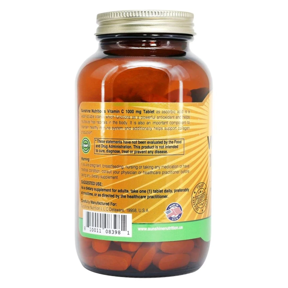 - Sunshine Nutrition vitamin C 1000 mg tablet as ascorbic acid is a water-soluble vitamin that functions as a powerful antioxidant and helps neutralize free radicals in the body