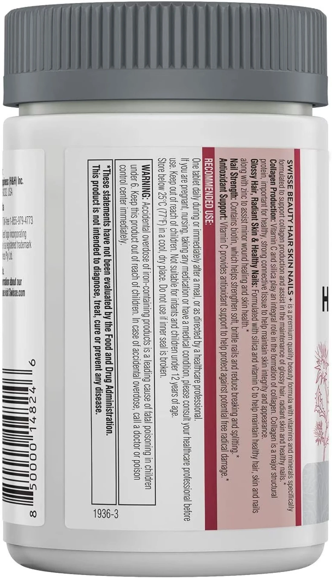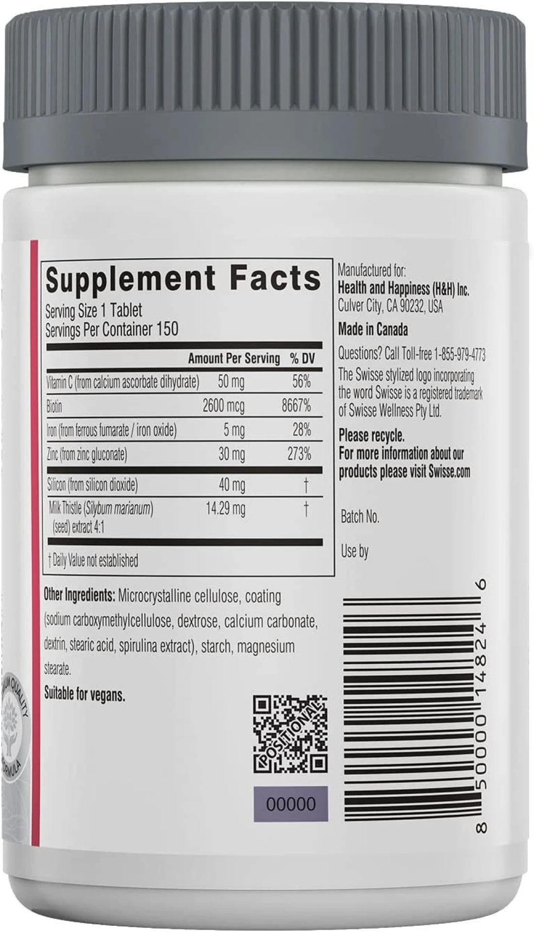 Swisse Biotin Hair Skin And Nails Vitamins For Women & Men, Supports Hair Growth & Collagen Production, Vitamin C, Milk Thistle & Silica, Collagen Supplement For Hair Skin And Nails, 150 Tablets
