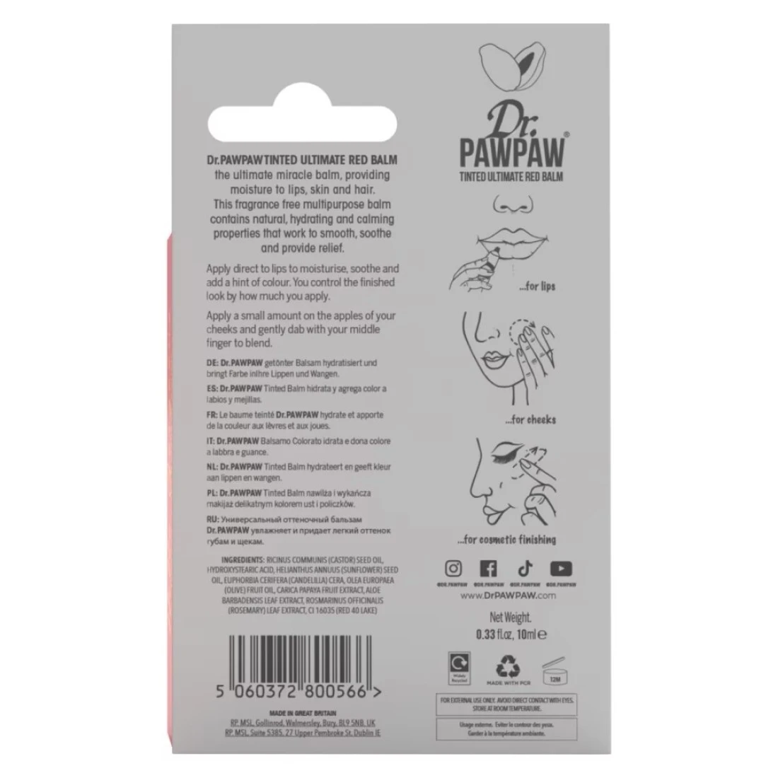 - Dr.Pawpaw Tinted Ultimate Red Lip Balm can be used in a variety of ways on the lips, cheeks and eyes