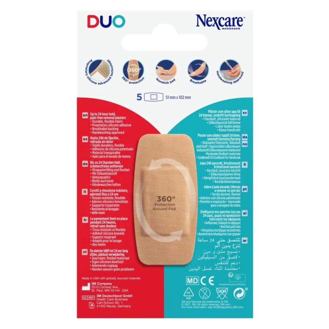 Nexcare DUO Bandages Plasters Maxi 51 mm x 102 mm 5 PCS are large-sized bandages that provide maximum coverage and protection for wounds. These bandages are made with a durable and flexible material that allows for comfortable wear and easy application. They are designed to stay in place even during movement and are perfect for covering larger cuts scrapes and burns. Each pack contains 5 bandages ensuring you have an ample supply for all your first aid needs.