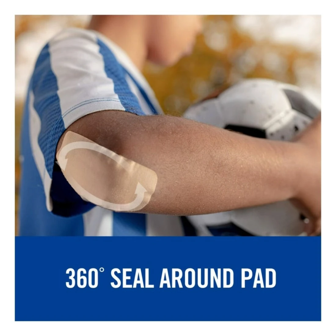- 360-degree seal around pad covers and protects minor wounds
