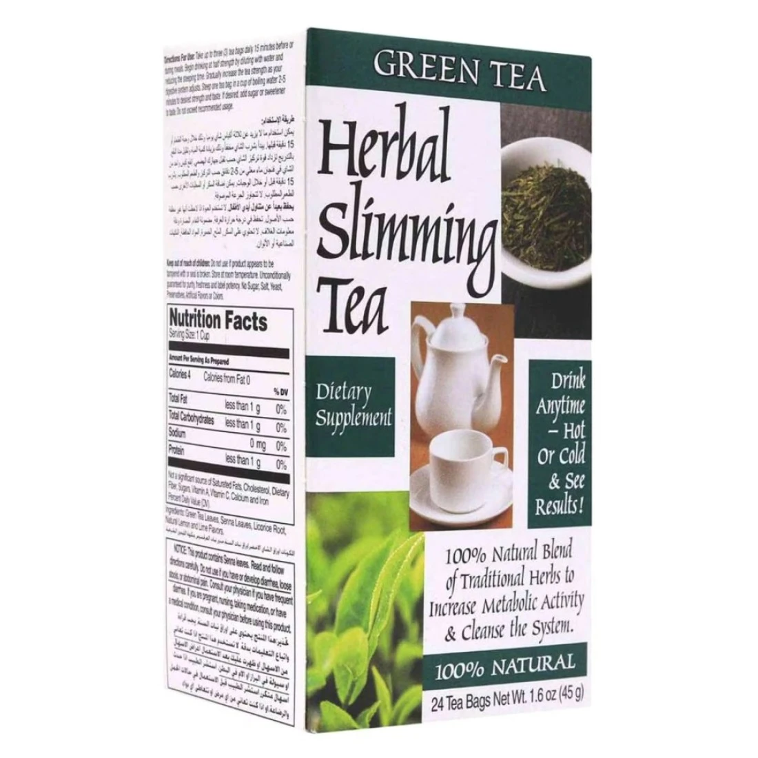 Experience the power of nature with our 21st Century Herbal Slimming Green Tea. Each tea bag is carefully crafted with a blend of natural herbs to support your weight management goals. Sip on a cup of our Herbal Slimming Green Tea and enjoy the refreshing taste while promoting a healthy metabolism. With 24 tea bags in each box, you can easily incorporate this herbal tea into your daily routine. Discover the benefits of green tea combined with traditional herbs in our Herbal Slimming Green Tea. Take a step towards a healthier lifestyle with this natural and effective slimming tea.