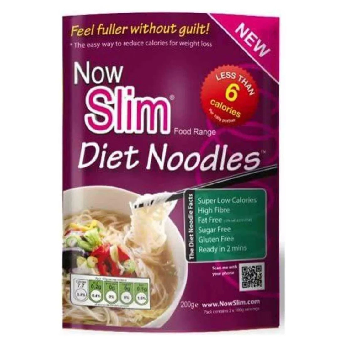 - Now Slim Diet Noodles contain less than 6 calories per 100g serving! Switching from normal noodles to Now Slim Diet Noodles is possible.