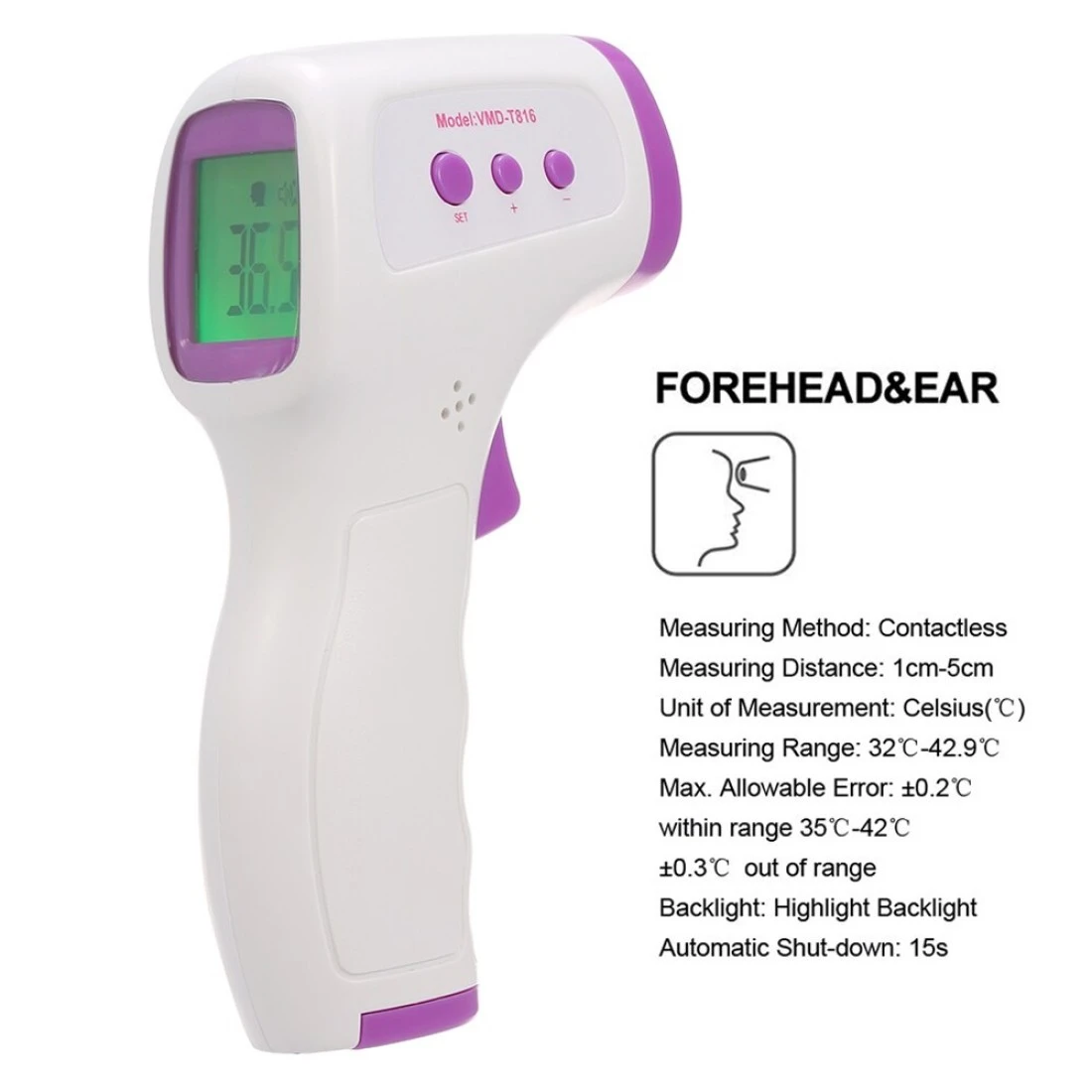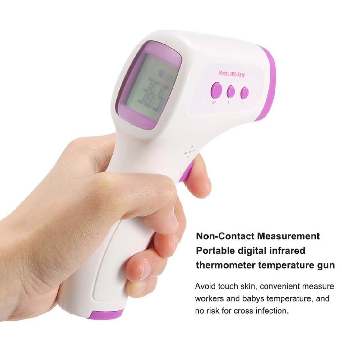 This is an infrared digital forehead thermometer with high precision, which is hand-held and portable for easy use. Non-contact design reduces cross infection effectively, widely used for measuring body temperature.