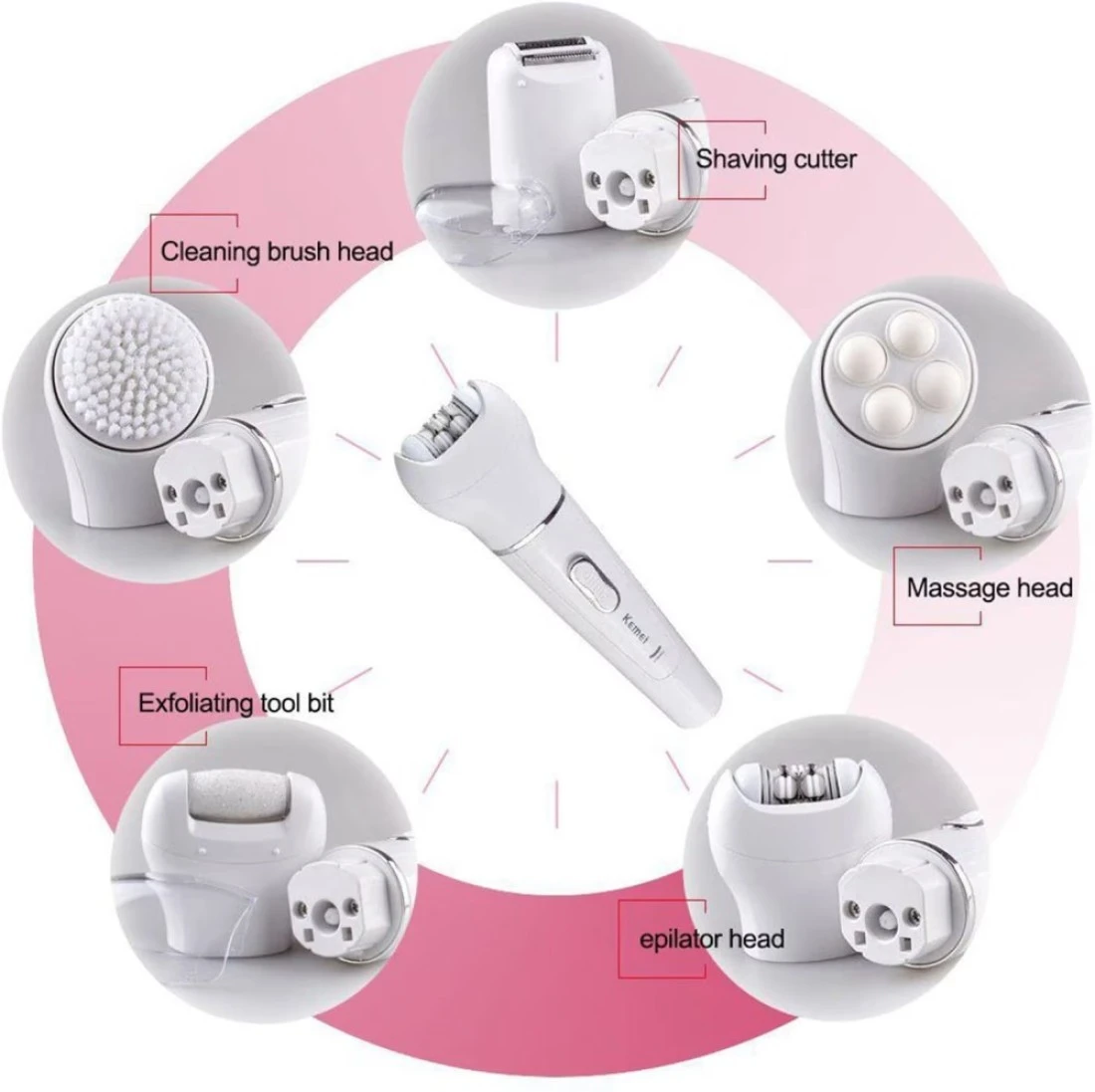 Generic Kemei 5 In 1 Beauty Tool Kit, Facial Cleansing Brush Body Epilator Lady Shaver Face Massager Foot Dead Skin Callus Remover