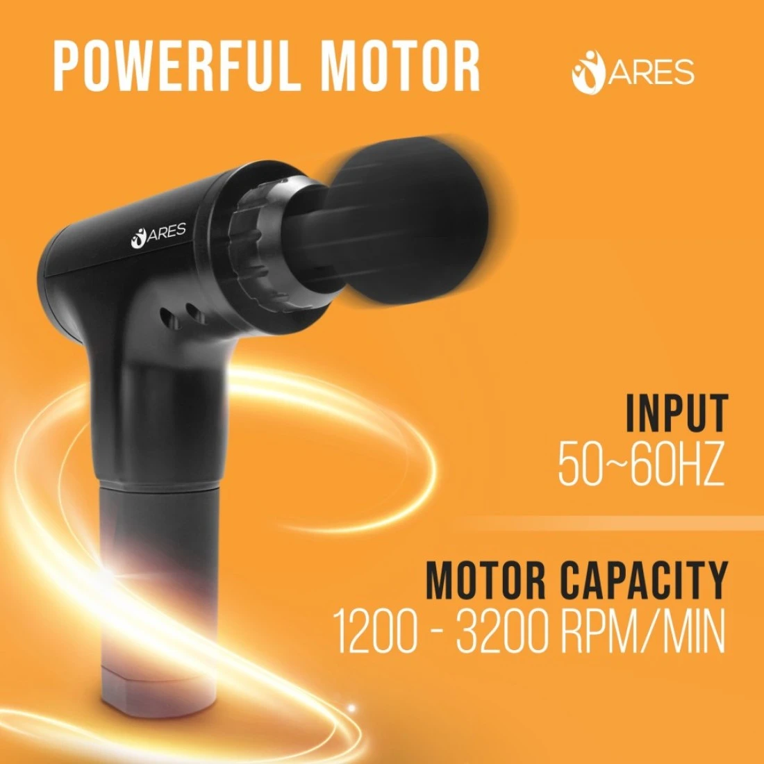 ARES Gun Massager Handheld for Muscle, Deep Tissue, Cordless Portable & Rechargeable - Black