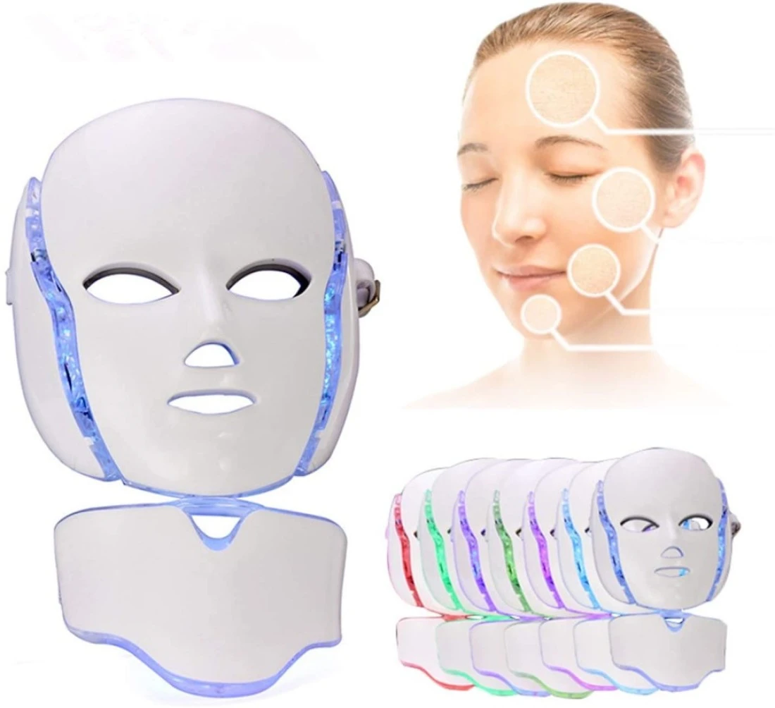 Facial Mask 7 Colors LED Light for Anti-Aging Skin Rejuvenation Face and Neck Care Treatment Beauty Whitening Device Scarring Healthy Therapy Photon Anti Aging Wrinkles