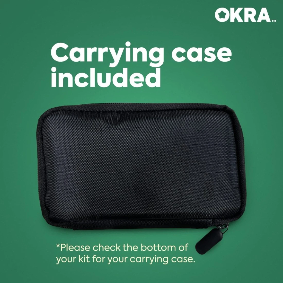 Okra Pro Glucose Monitor Kit Syncs with Free App Meter Test Strips Lancets Lancing Device Control Solusion and Carry Case