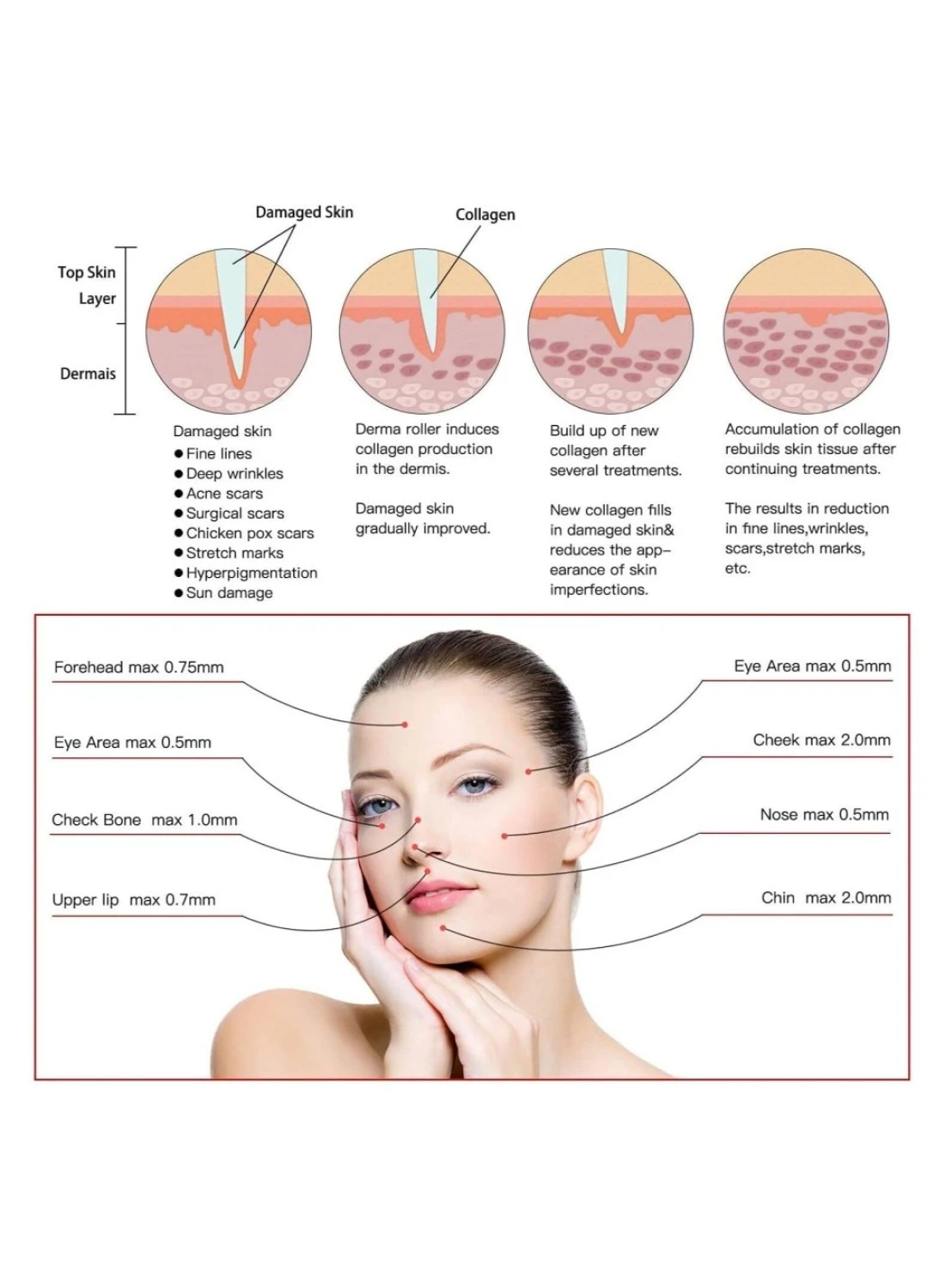 - The adjustable dial allows treatment that adapts to individual client’s needs. (Notice that the maximum depth depends on your cartridge's type)