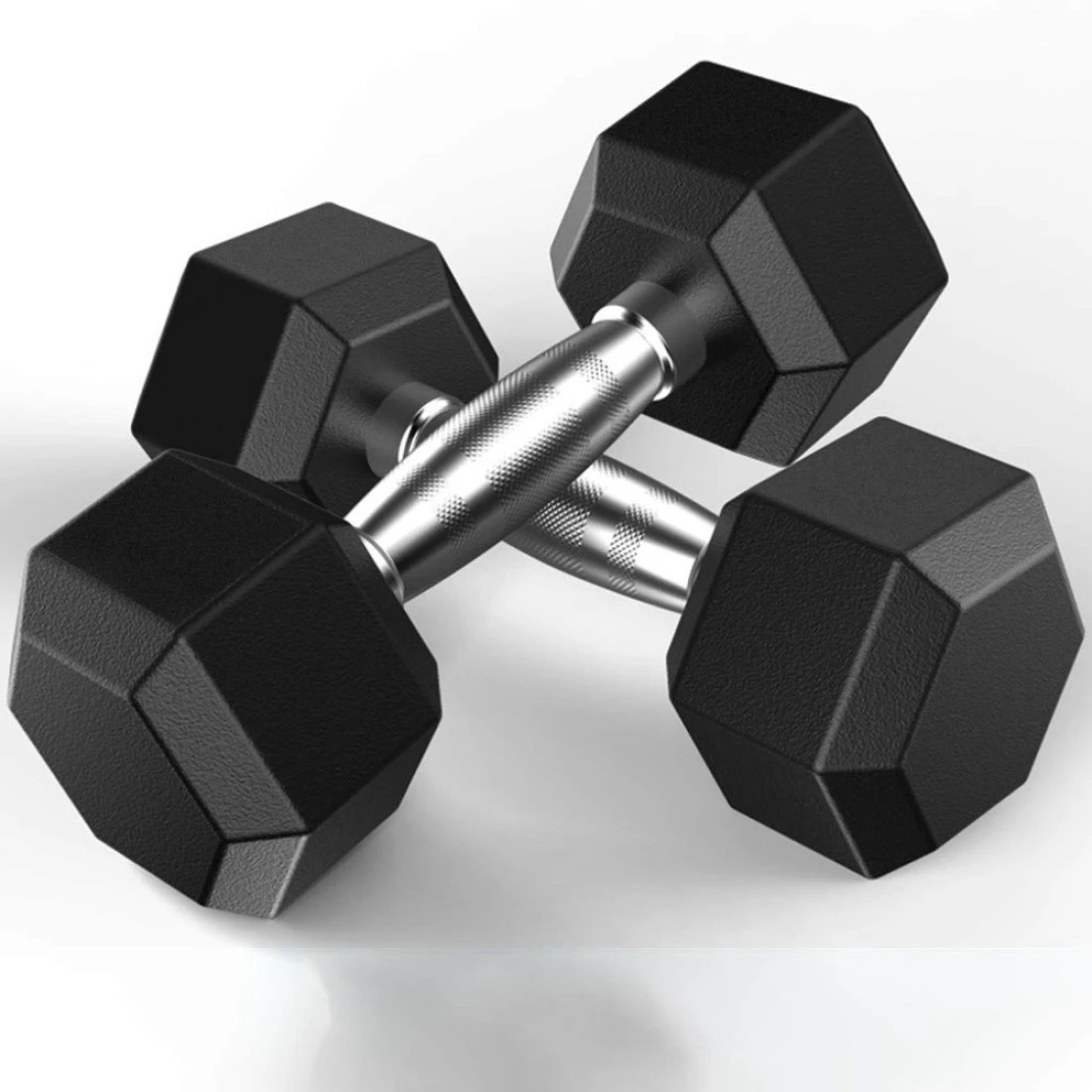 πππππ πππππ πππππππ Our rubber hex dumbbell has strong steel handles made from cast iron core. They are professionally built for comfort and ergonomics. The dumbbell sets have knurled handle grip to boost confidence and stability during body workout. The design of bar has a slight curvature and widening in the middle to fit tightly in the shape of palm for more control.