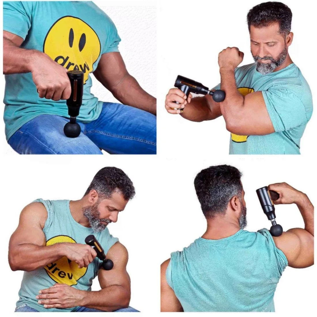 - This muscle massage gun is delivered with 4 professional different shape massage heads which will meet your different massage needs for all your different body parts and different muscle type