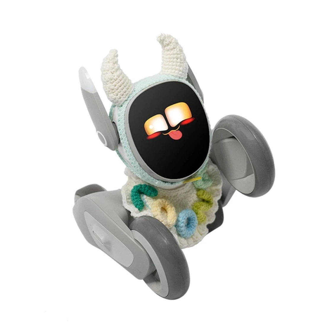 Handcrafted Quality: Every piece is carefully handmade with premium materials, ensuring Loona's outfit is both beautiful and built to last, Unique Bull Horn Headpiece: Includes a Bull Horn Headpiece in blue and cream, inspired by the spirit of bullfighting. The design brings a playful, animal-inspired element that adds fun and excitement to your Loona’s personality., Personalized Collar: Features a cream, green, and blue collar with “Loona” written in stylish lettering, combining a cute and trendy look for your pet robot., Easy to Use and Stylish: Specifically designed for Loona Pet Robots, this outfit is easy to put on and take off, making it a hassle-free yet stylish accessory for your robot companion. (Steps to wear down below), Lightweight: The entire outfit weighs just 250 grams, making it easy for your Loona Pet Robot to move around freely. Order now!, Steps to wear:, Position the clothing around Loona’s neck and fasten the buckle securely., Place the headpiece on Loona’s head. Slip Loona’s ear through the holes on each side, with the wide strap in front and the thin strap in the back. Button the strap in front of Loona’s face. Hold the horns part and pull the buttoned part down to Loona’s chin., Align the front edge of the strap with the edge of Loona’s face, and move the thin strap at the back below the speaker hole on the back of Loona’s head. Make sure the microphone is exposed through the hole in the strap. Ensure the cooling vents on Loona’s Chin are exposed.