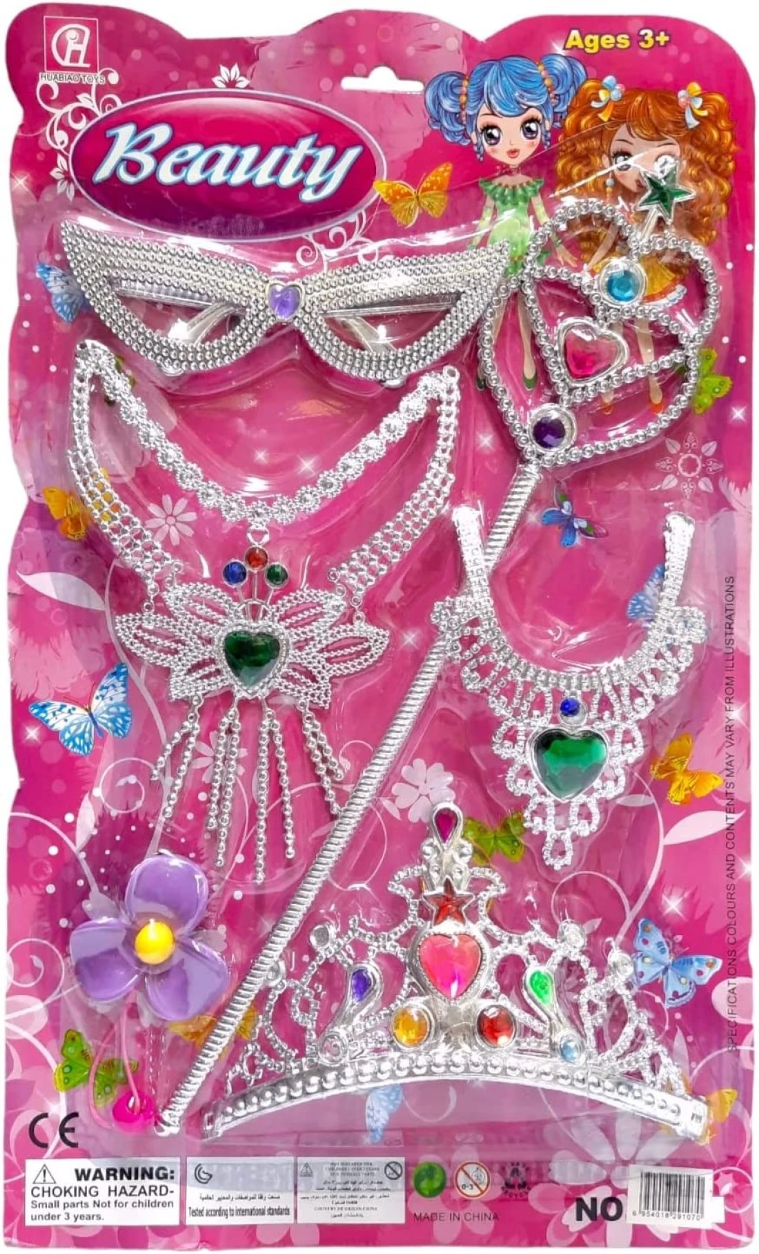 Party Time 6pcs Set of Princess Dress Up Accessories for Princess Costume Tiara Wand Necklace Gift Set Princess Accessories for Girls