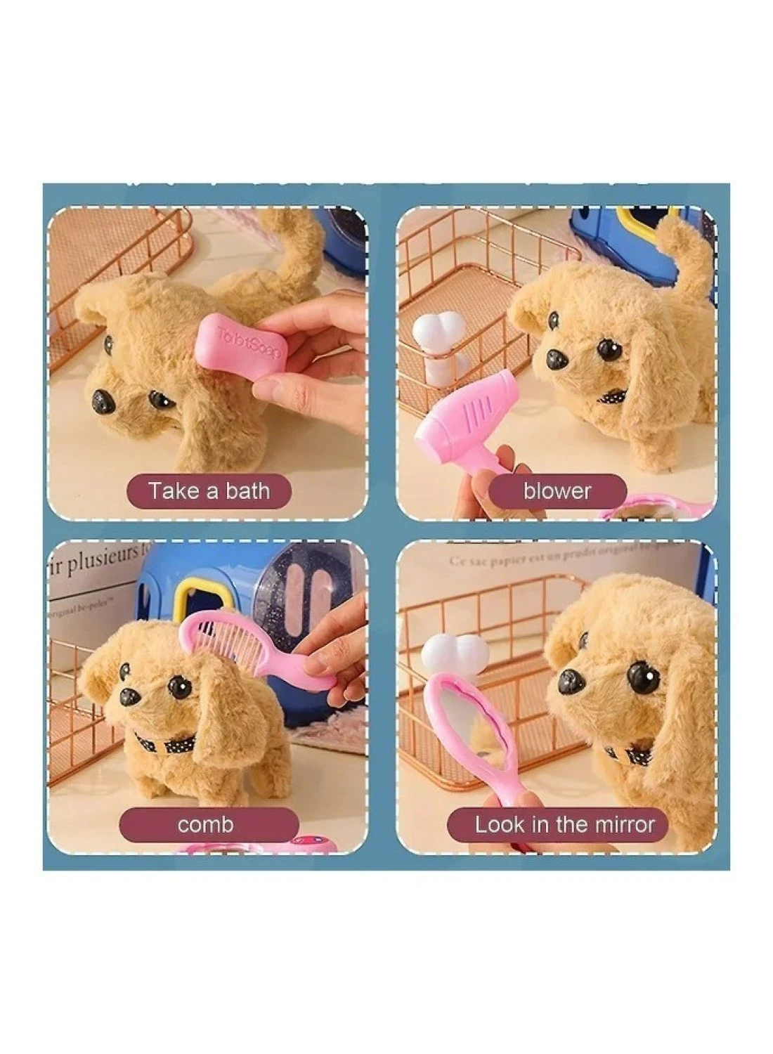 - Realistic Appearance: Features a golden retriever-inspired design with soft plush material that feels gentle to the touch, making it a cute figure loved by children.