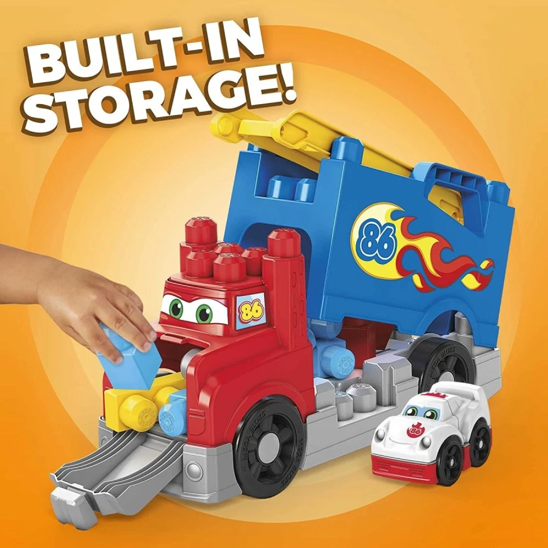 Handy, built-in storage for blocks and race car