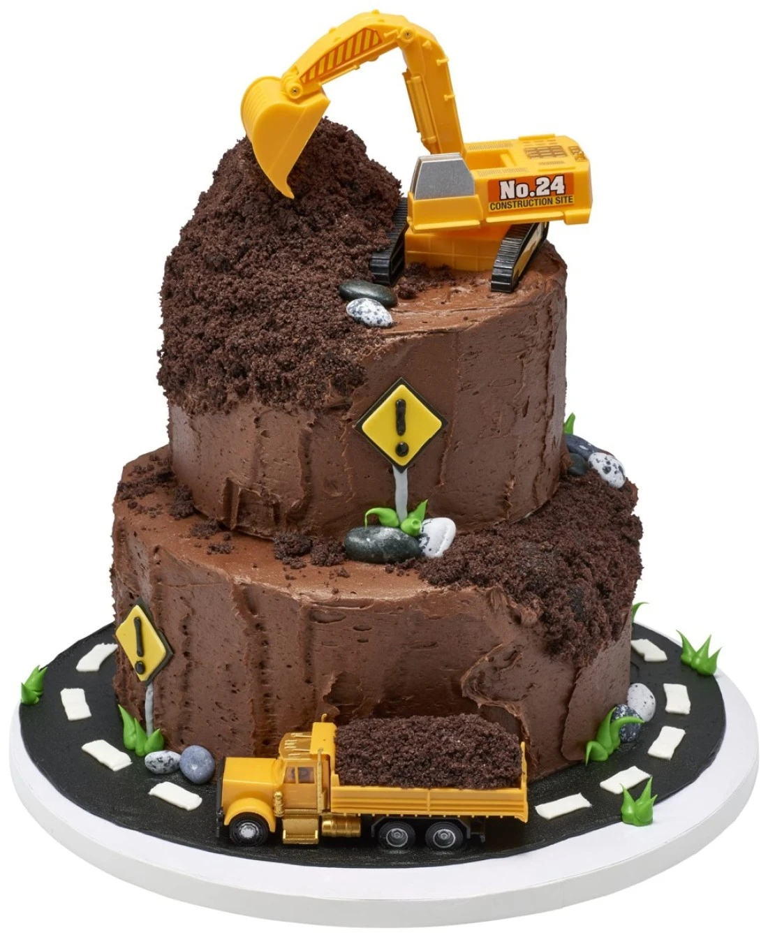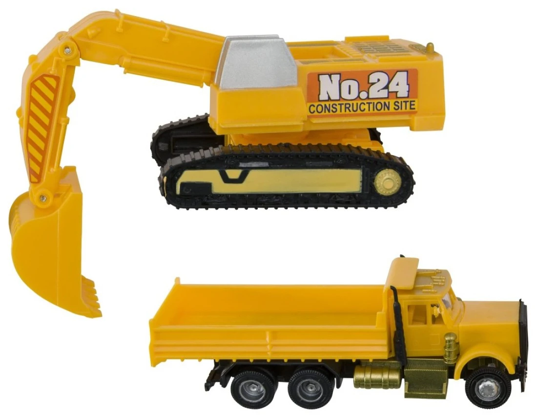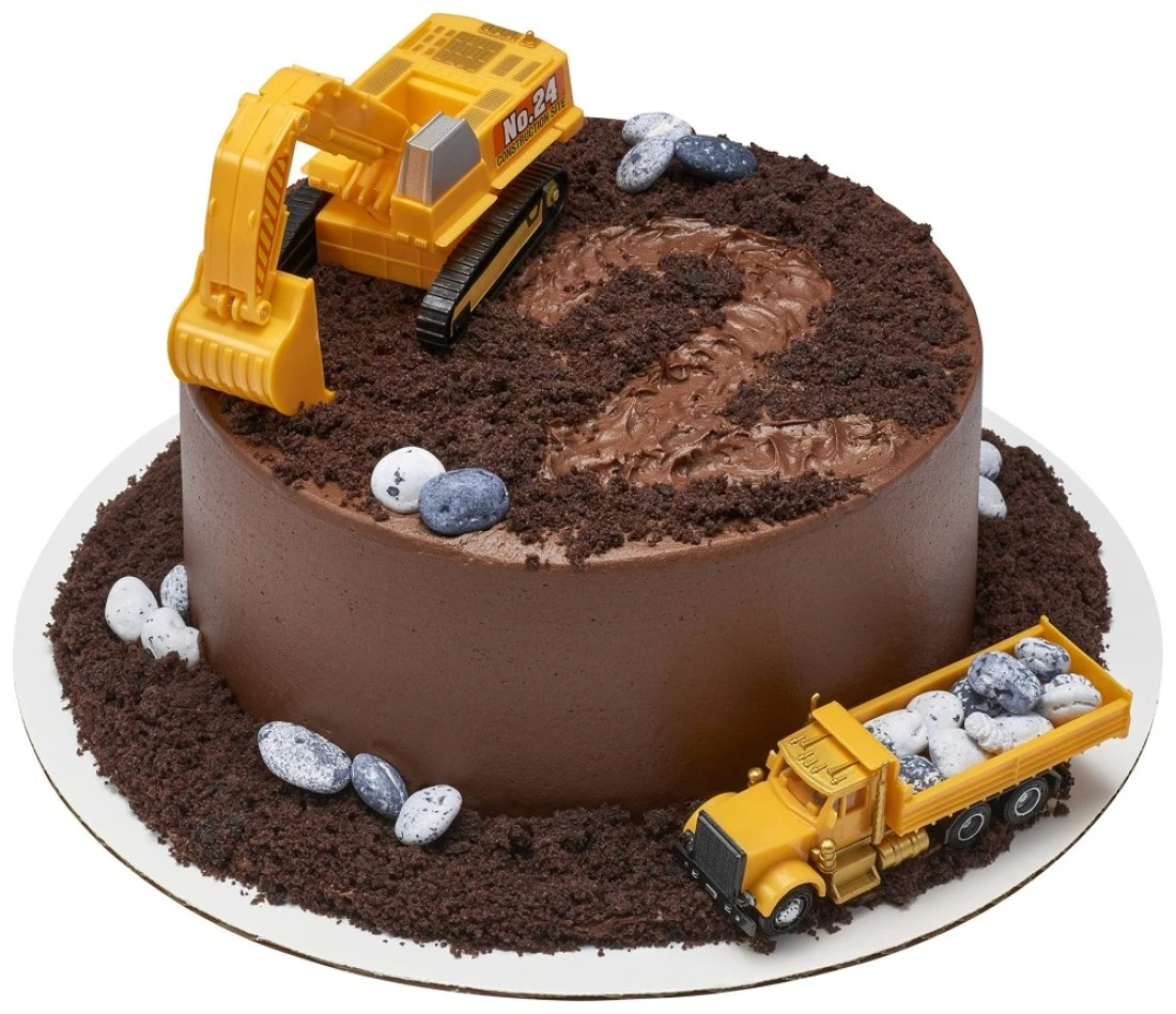 DecoPac Construction Dig Cake Decoration 2 Piece Cake Topper Set with Dump Truck and Moveable Excavator Food Safe Ready to Use For Birthday Themed Parties Celebration Yellow 11826