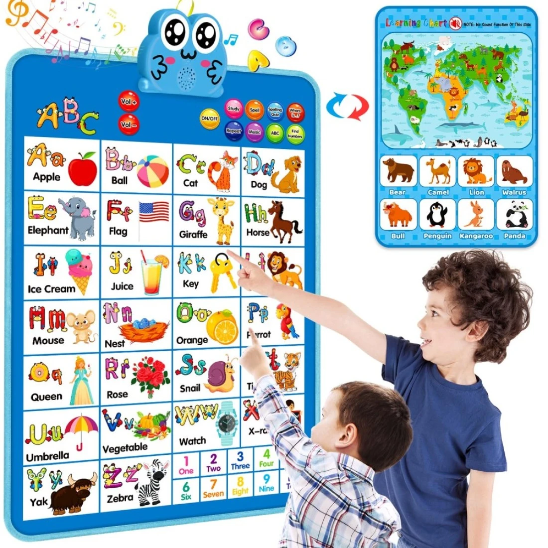 Electronic Interactive Double-Sided Alphabet Wall Chart, Talking ABC & 123 & Music & Learning Poster, Educational Toddlers Toys for Ages 3-4 Kids Gift, Best for Preschool Boys & Girls(Blue)