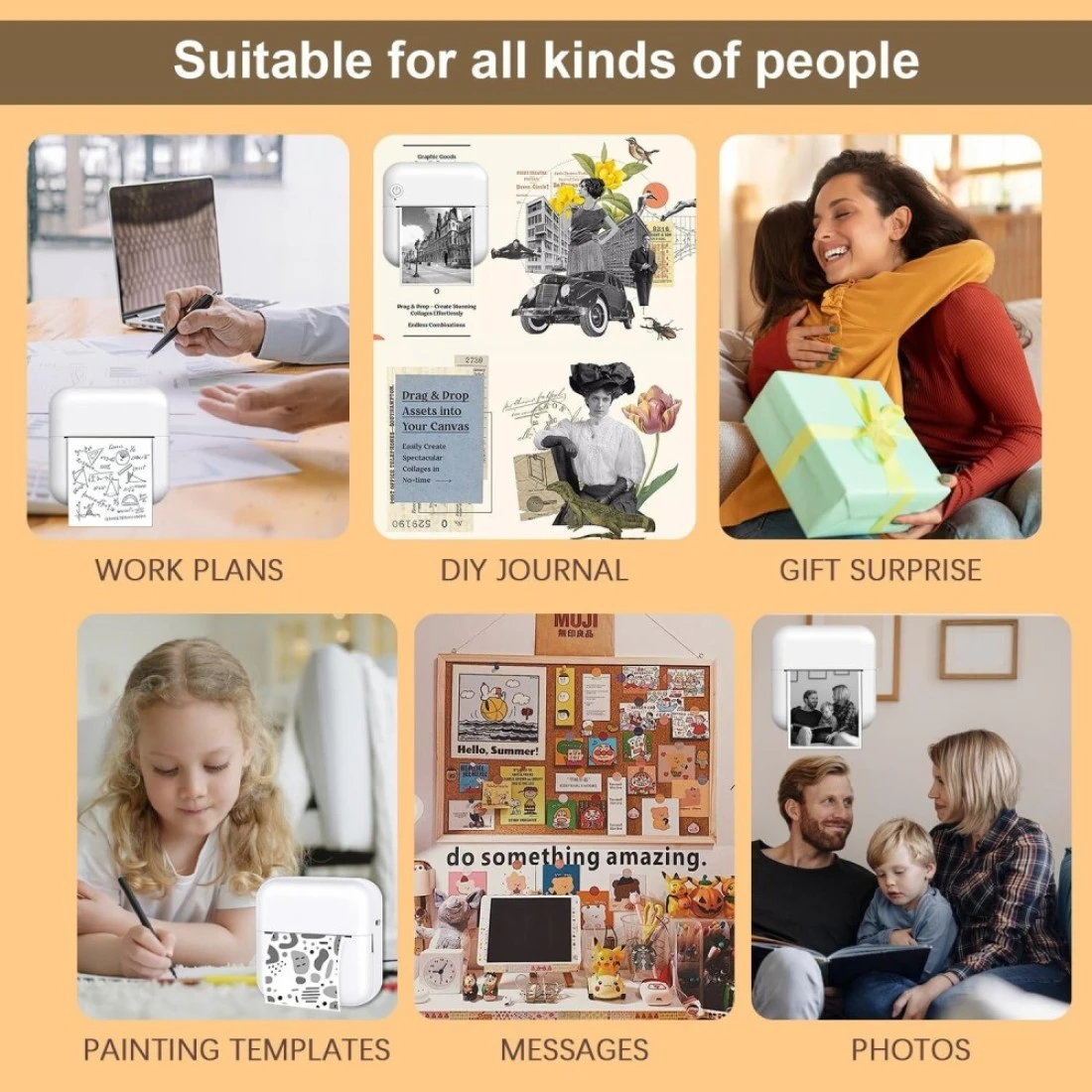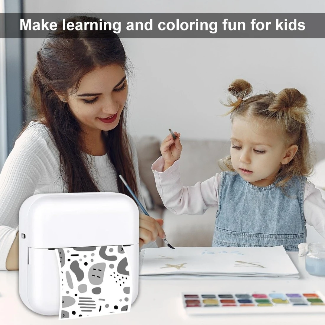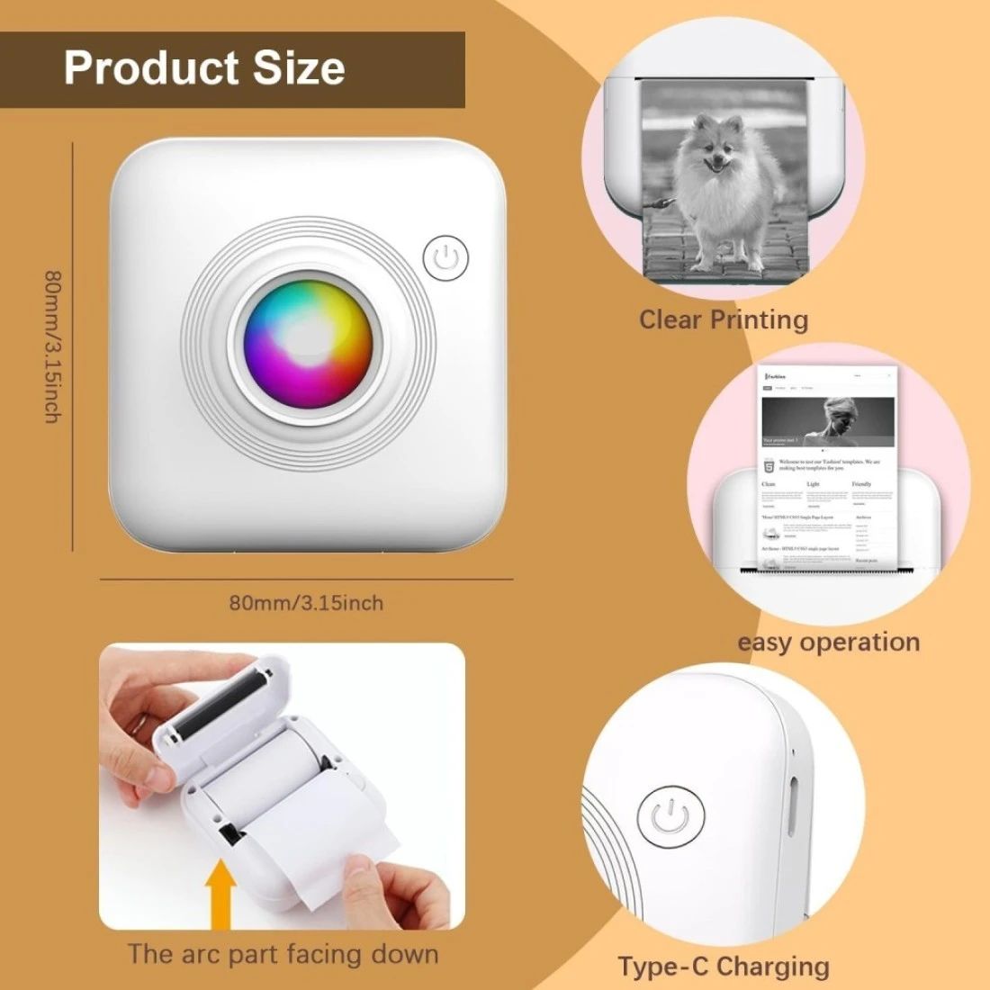 Mini Portable Thermal Printer – Inkless Sticker & Self-Adhesive Label Wireless Bluetooth Printer for Android & iOS Smartphones – Compact, Portable, and Easy to Use