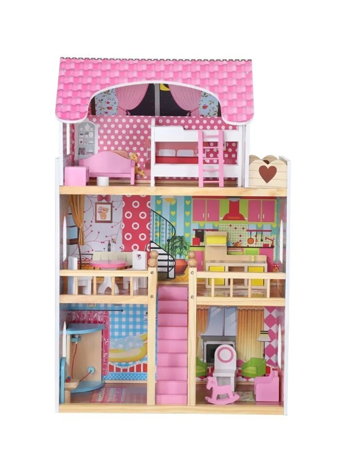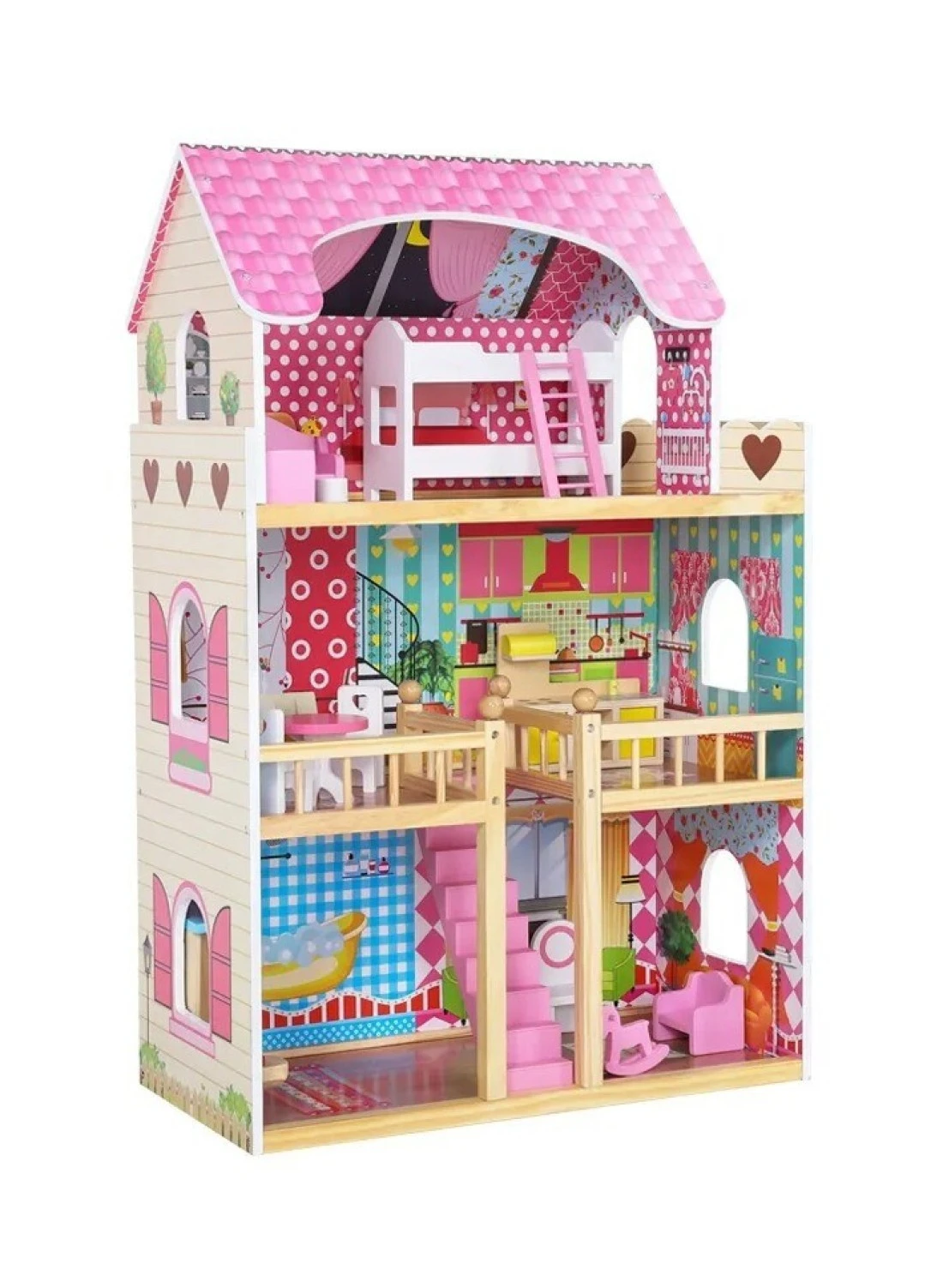 Multi-tiered design with simulated rooms, perfect for creating different living spaces and imaginative play scenarios.