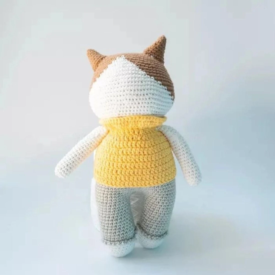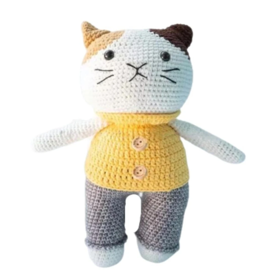 Handmade Natural Cotton Crochet Cat Toy Doll for Baby Friend Amigurumi Crochet Sleeping Buddy for Kids and Adults, 25cm