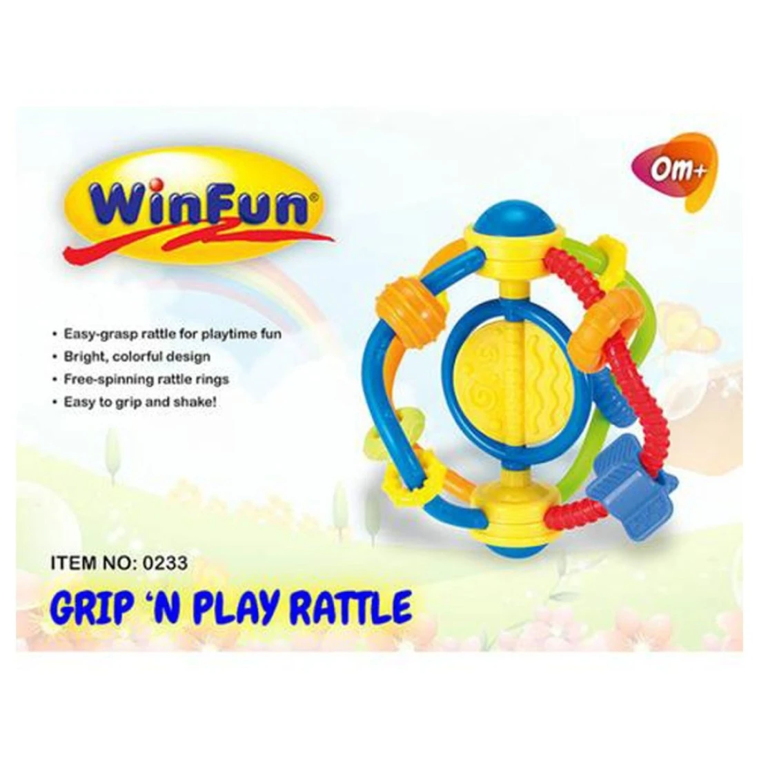 Great toy for your baby to play with anytime of the day.Easy grasp rattle for playtime fun.Bright, colorful design.Free spinning rattle rings.Easy to grip the shake.