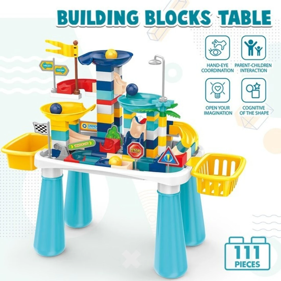 BUILDING BLOCKS : Table with creative building 3D space with interesting slide rail to bring more fun for the baby.