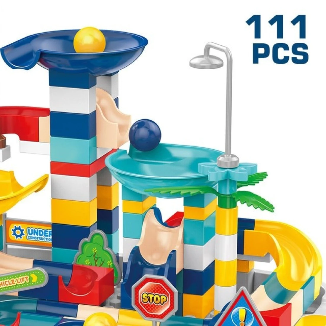 Little Story DIY Slide Track Rolling Ball Blocks Table(111pcs), STEM Series - Multicolor