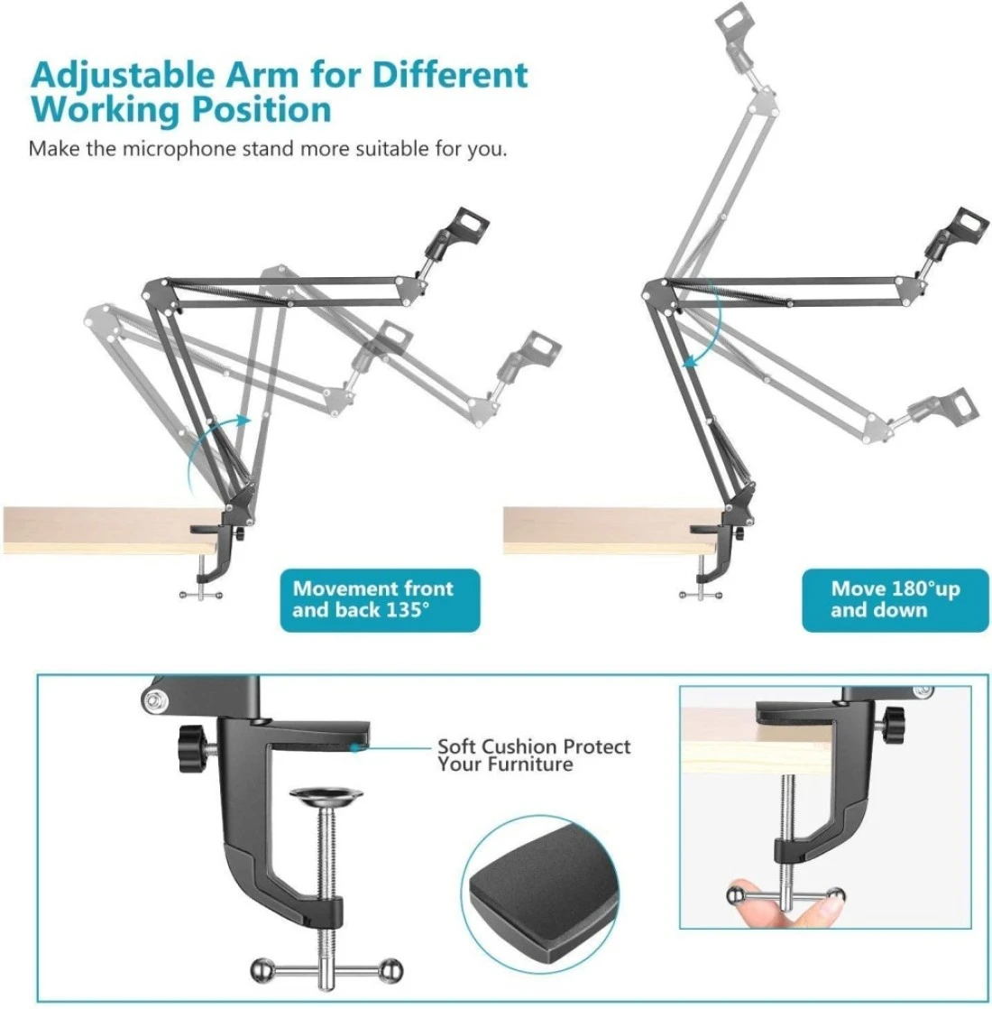 Folding type, convenient to carry. The adjustable arms allow you to carry it with you easily and adjust the suitable angle and height to show your perfect voice.