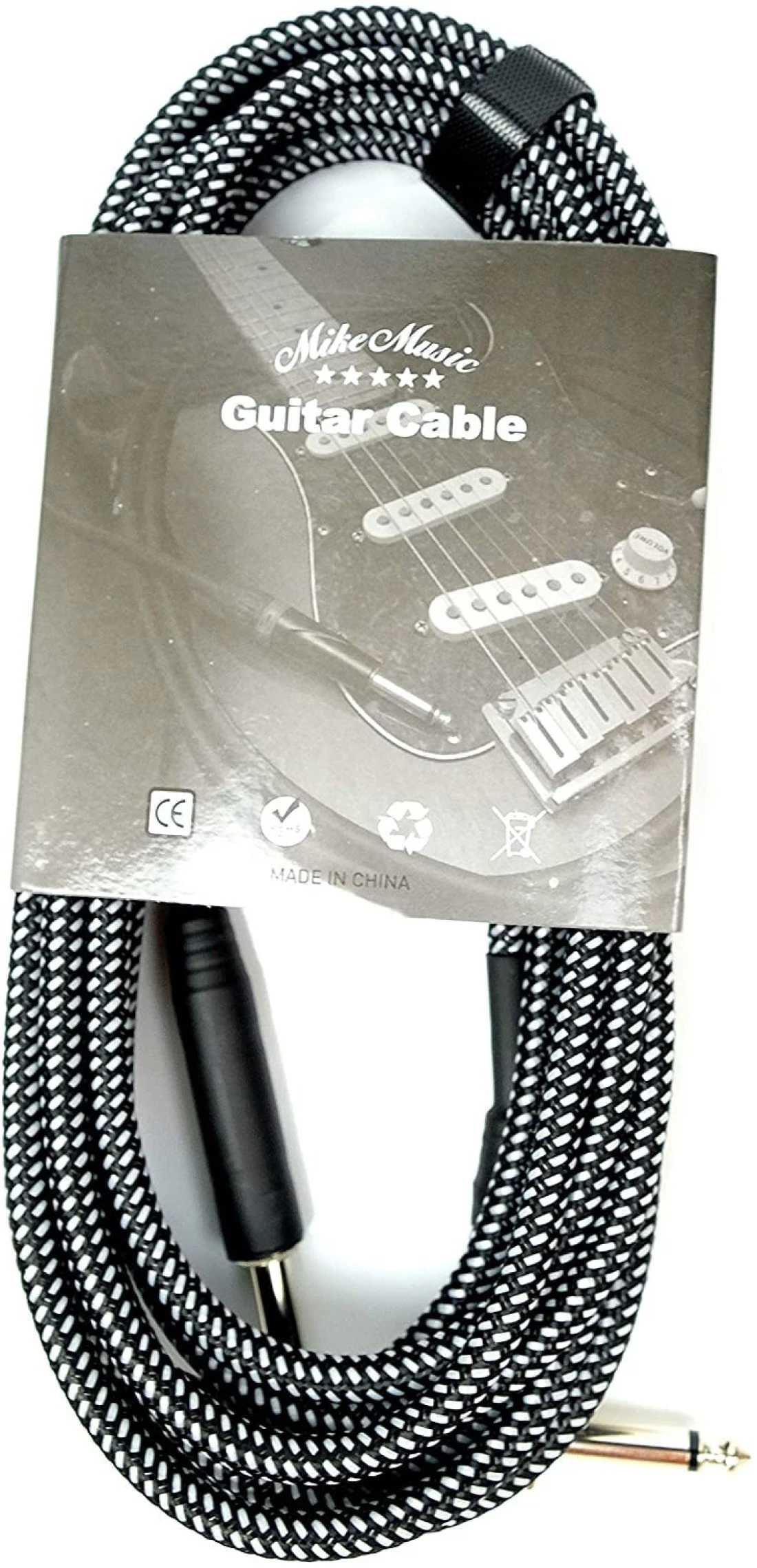 Mike Music 1/4 Inch Tweed Cloth Jacket Right-Angle Guitar Instrument Cable - 5 Meter (Black) (5 meter, Black)