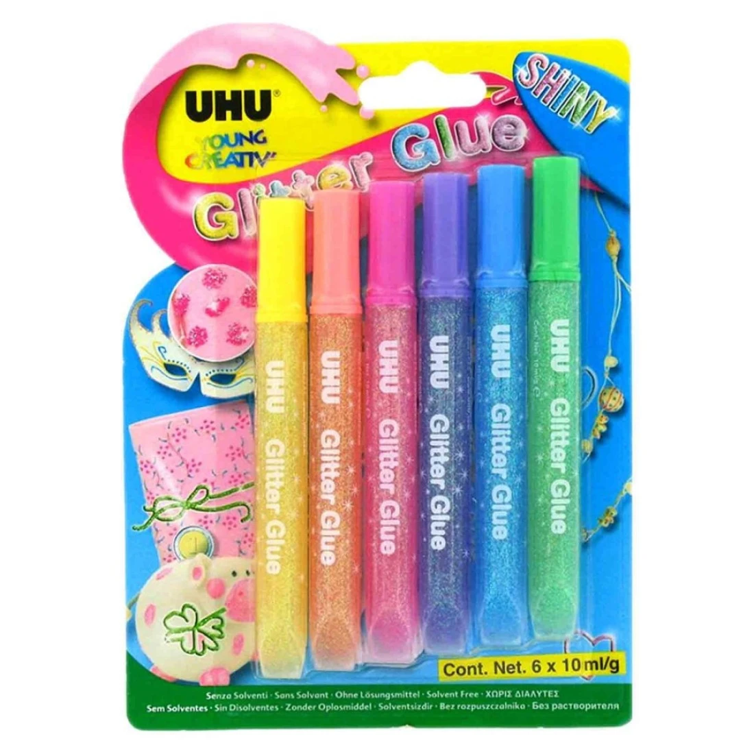 UHU Young Creative Shiny Glitter Glue Multicolour 10ml 6 PCS